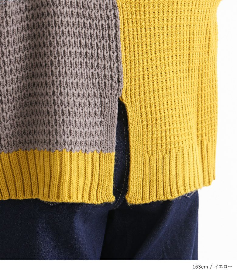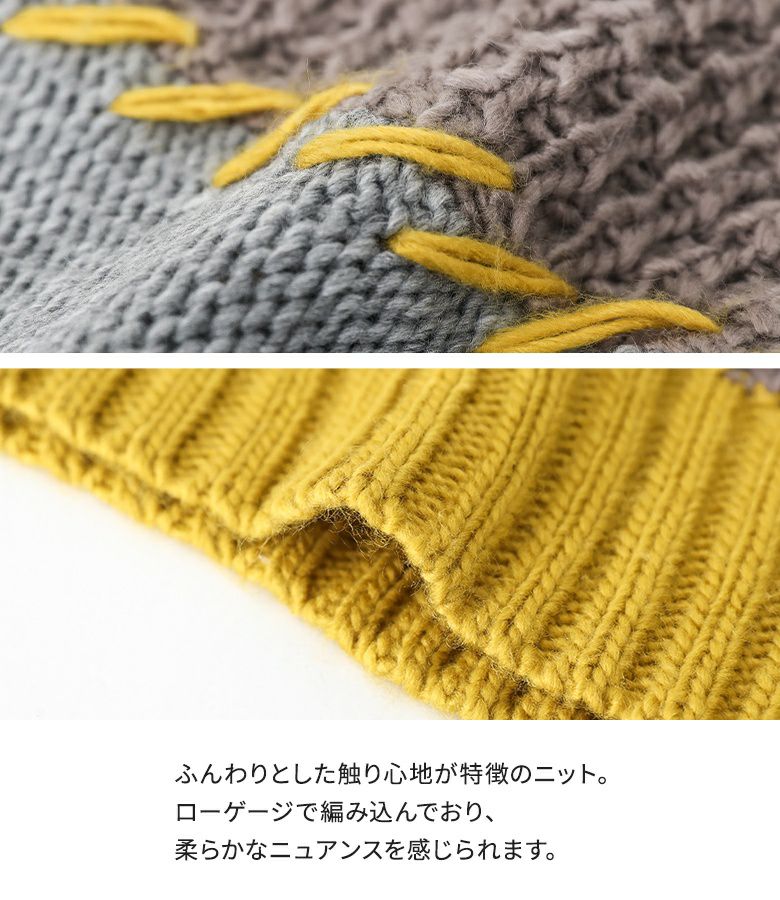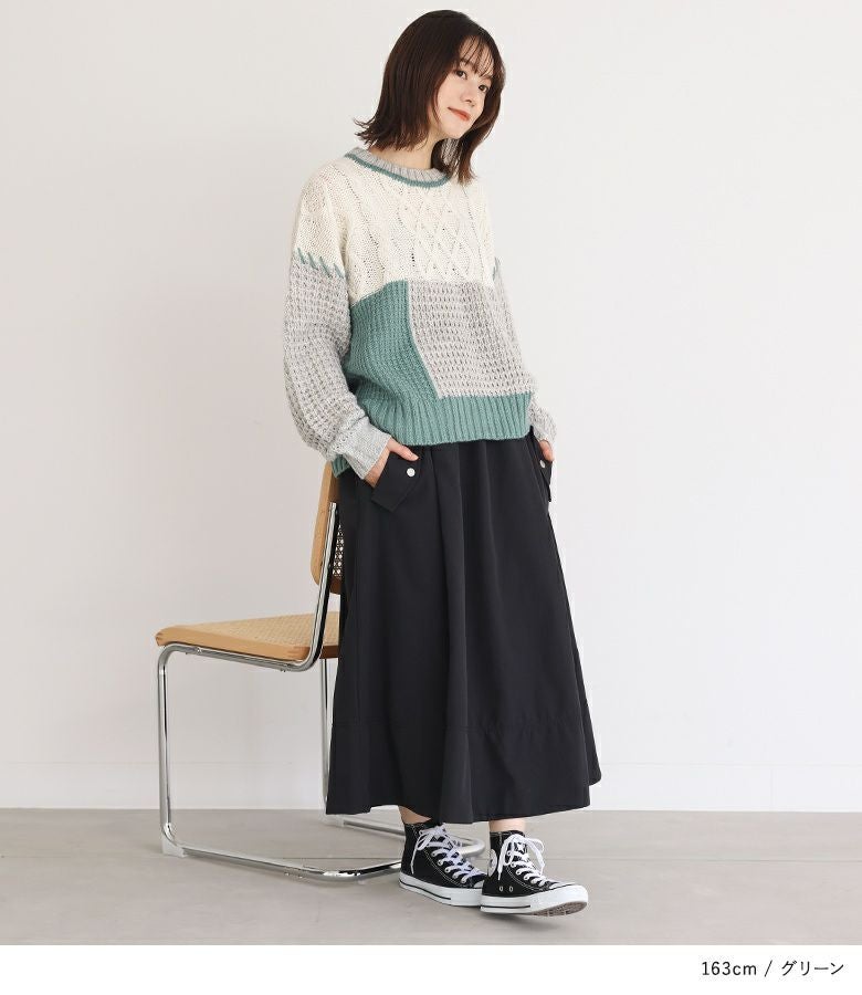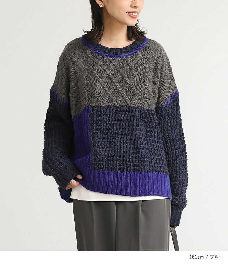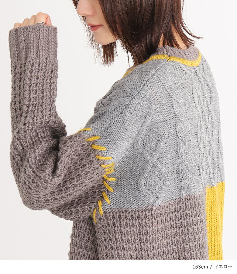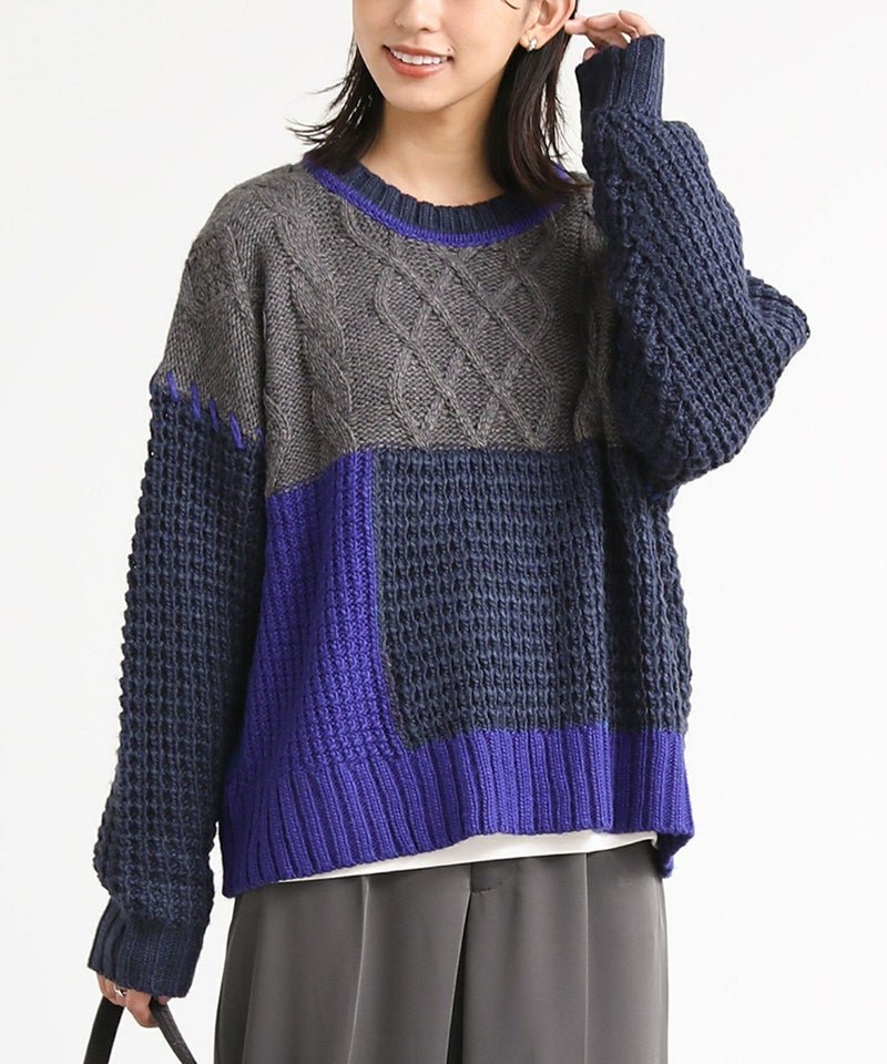 『n'OrLABEL配色パッチワークケーブルニット』