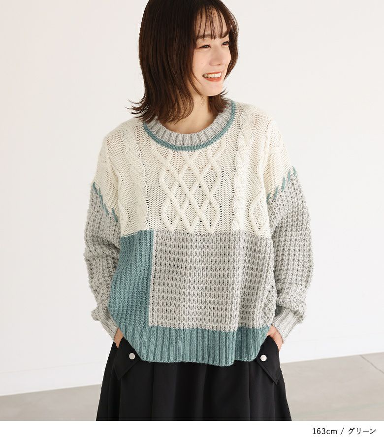 5. 『n'OrLABEL配色パッチワークケーブルニット』【メール便不可】【30】