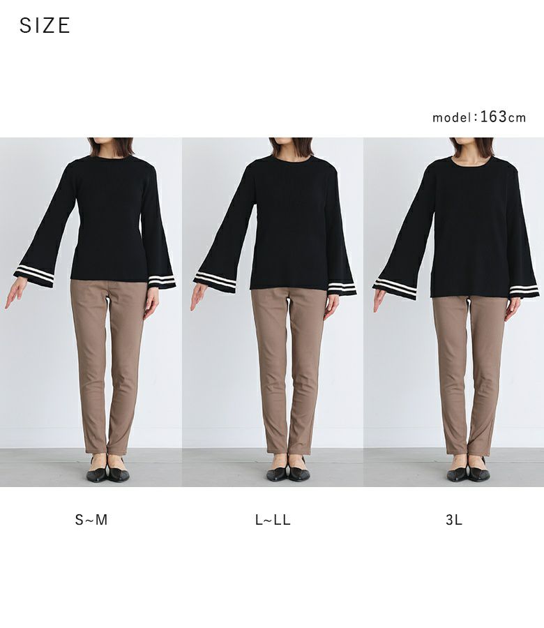 【L~LL】 袖丈:手の甲にかかる位 着丈:ヒップ下少し見える位 腕周り:ややゆったり バスト:ややゆったり 全体:ややゆったり
