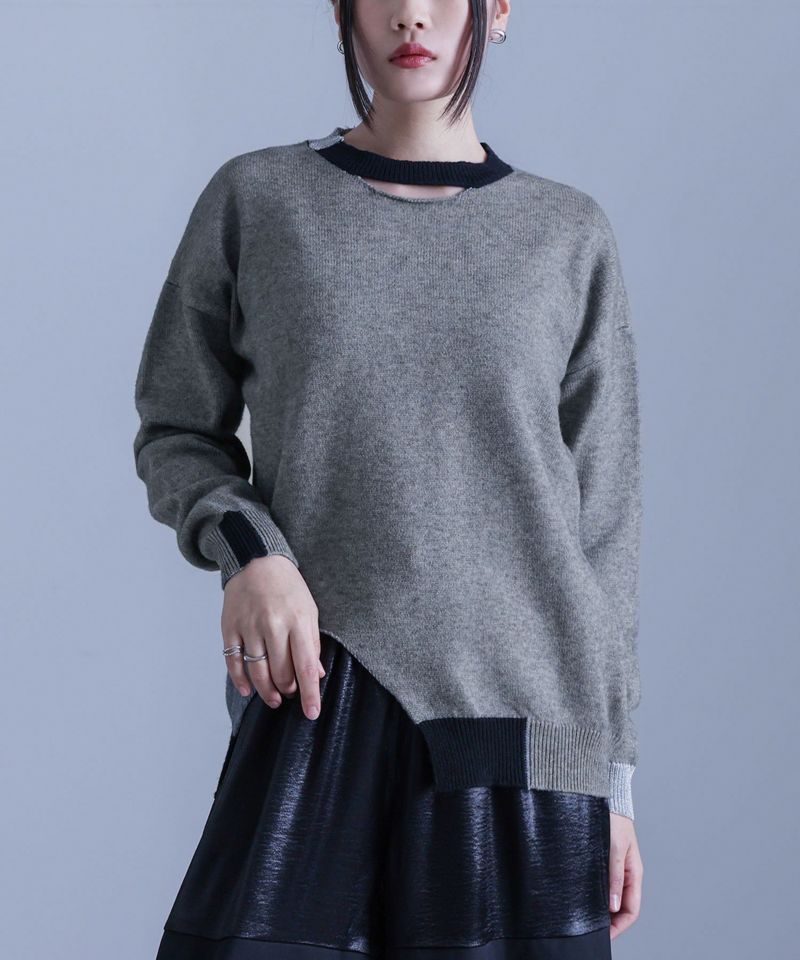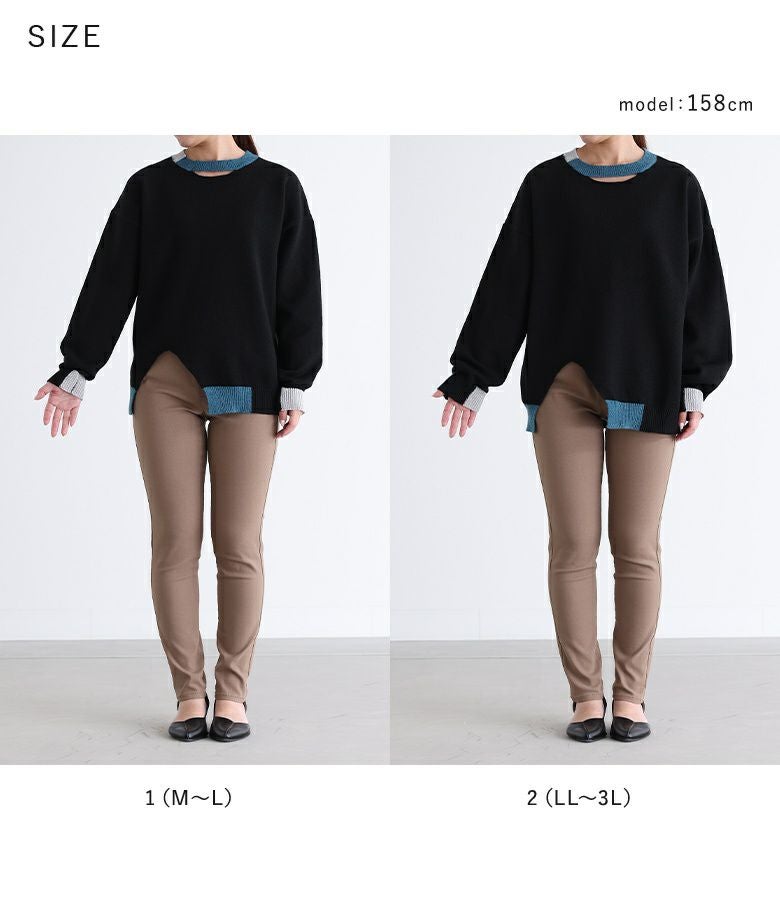 【普段着用】 Tops: L Bottoms: L | 【1】 袖丈:手の甲真ん中位 着丈:ヒップ真ん中より下位 腕周り:ややゆったり バスト:ジャスト 全体:スッキリ