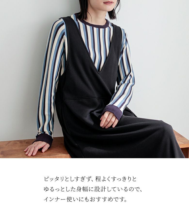 スッキリとしたシルエットですが、伸縮性があり楽な着心地です。