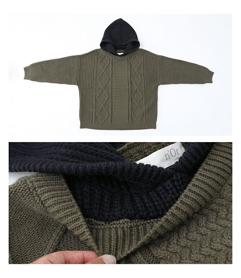 『n'OrLABELケーブル編みフードニット』
