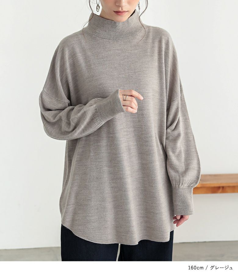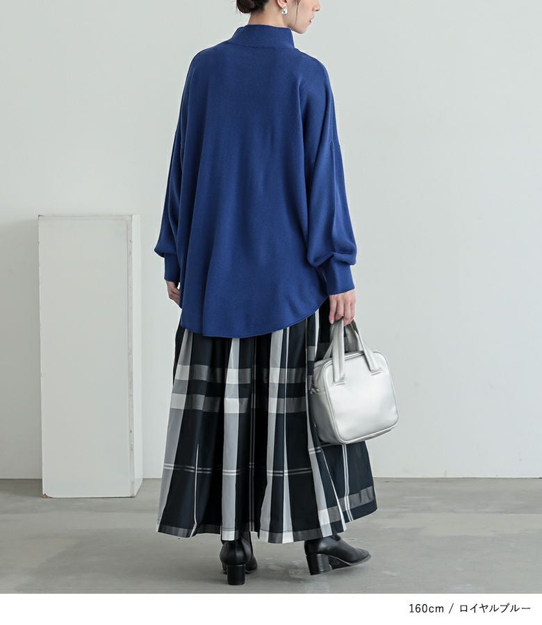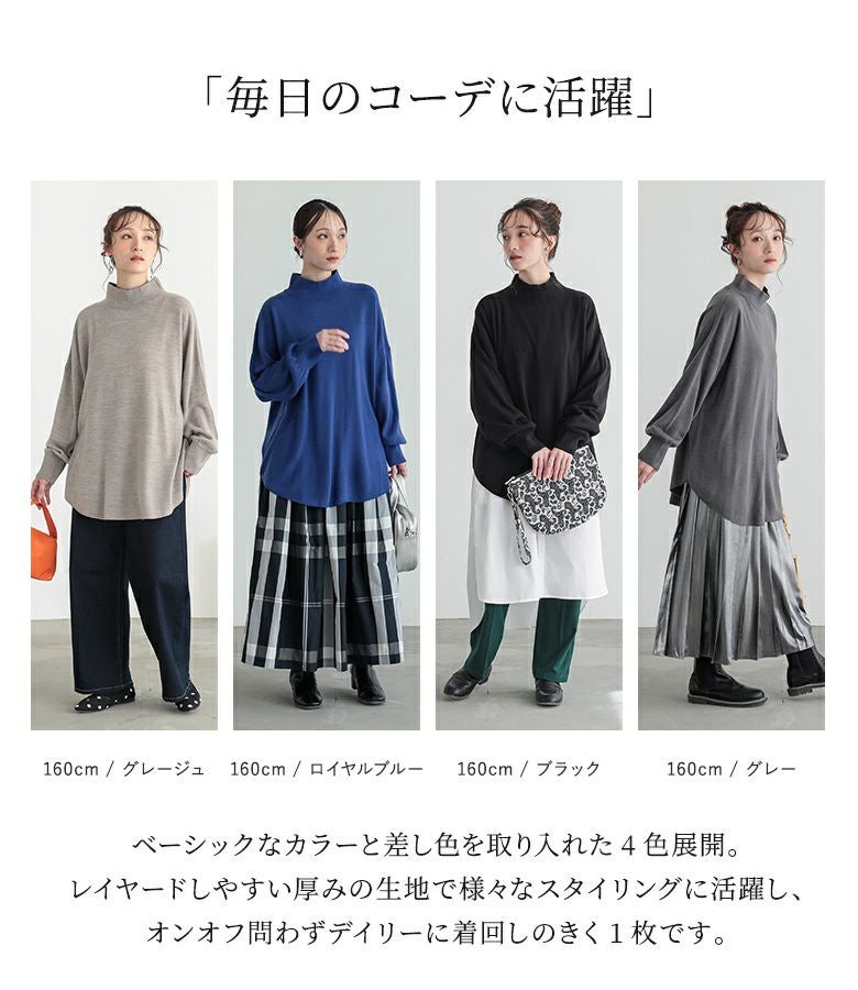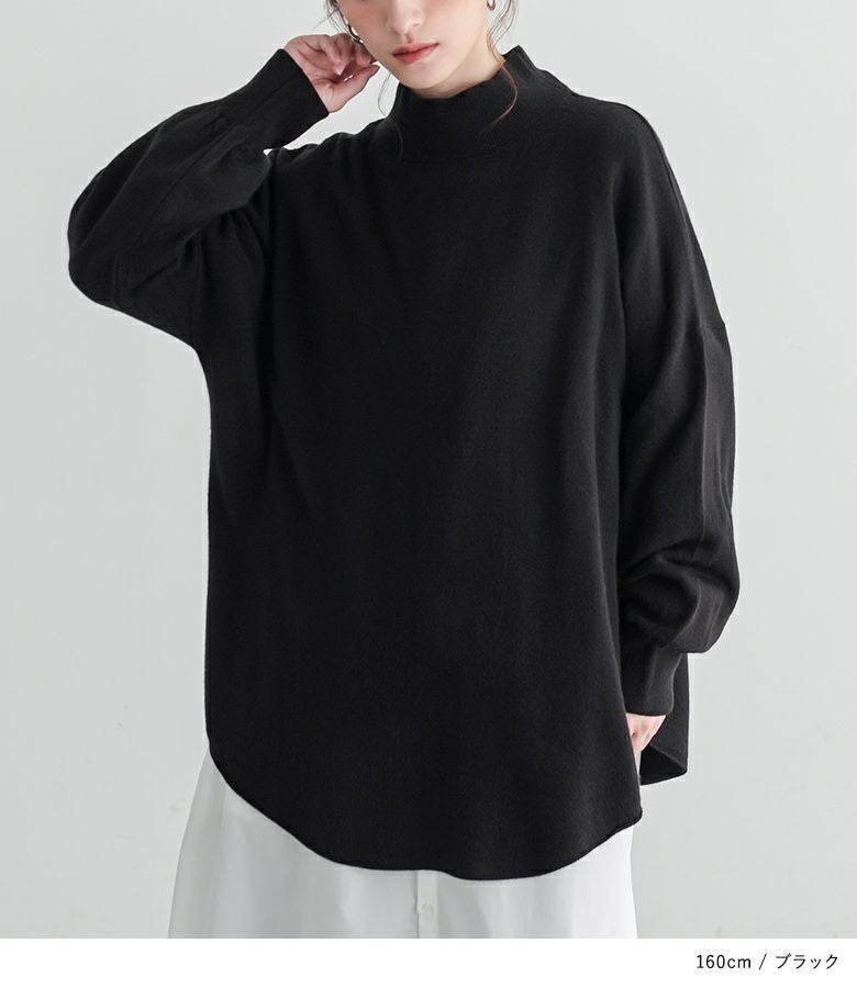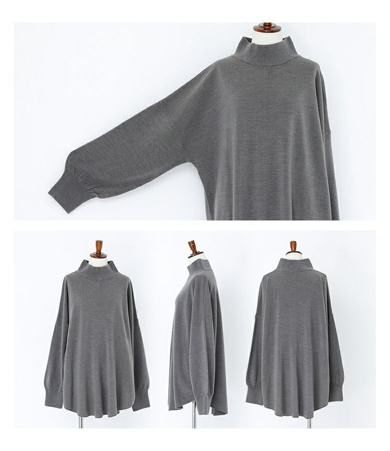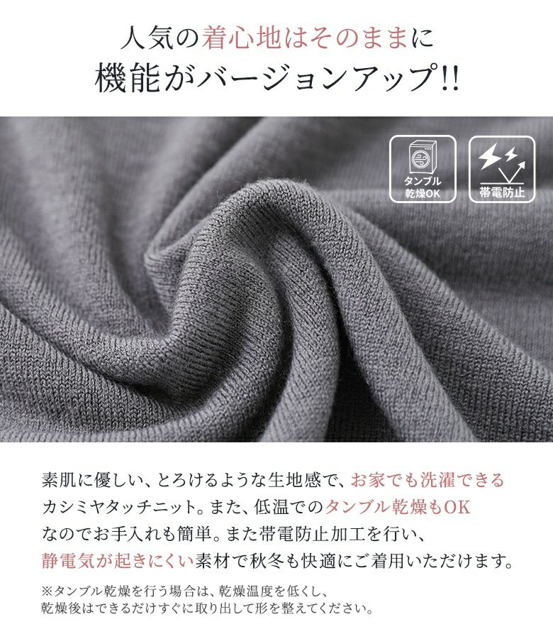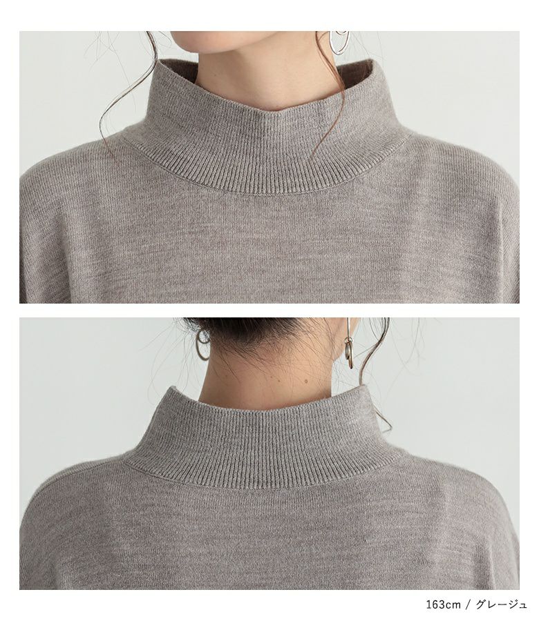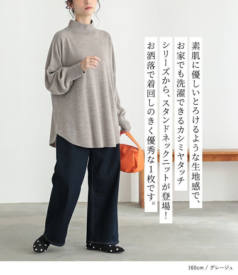 素肌に優しいとろけるような生地感のカシミヤタッチスタンドネックニット。