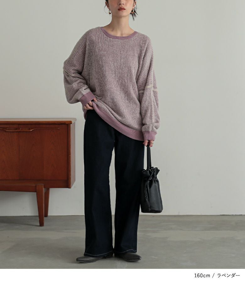 配色感がお洒落なモヘヤタッチニット。