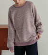やわらかな糸を合わせて編むことにより、独特のざっくりした風合いを出しております。製品の特性上、ざらついたものに引っかかりやすく糸が飛び出すことがございます。