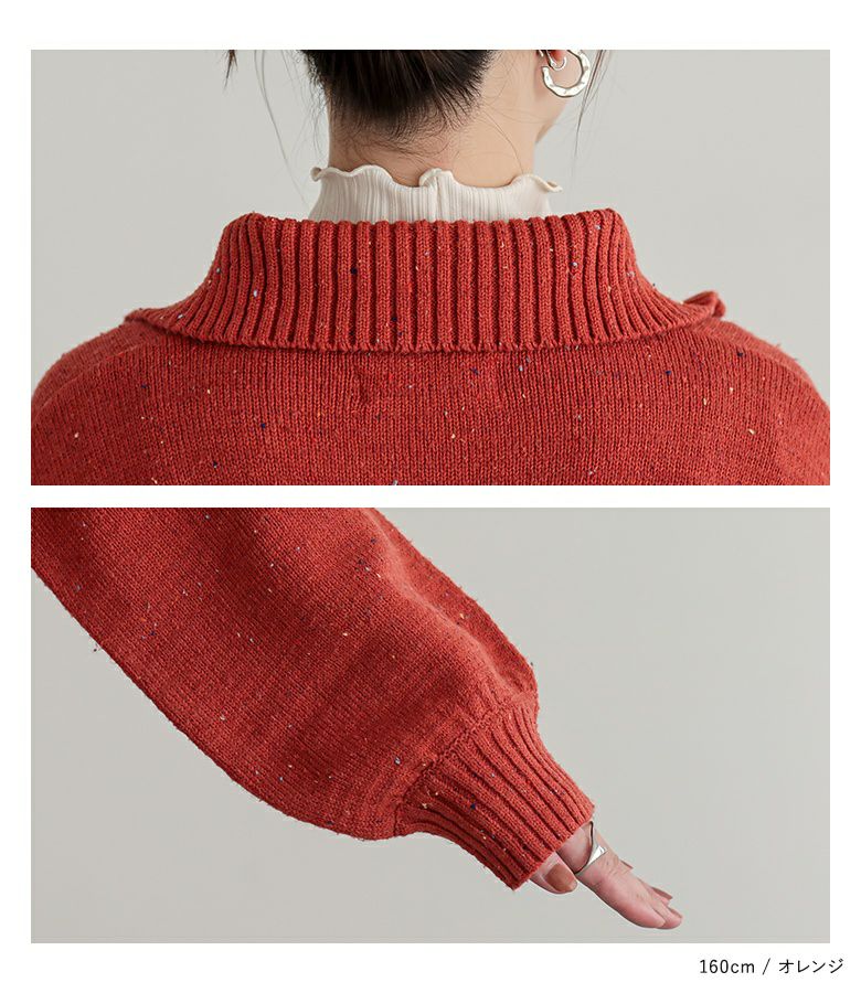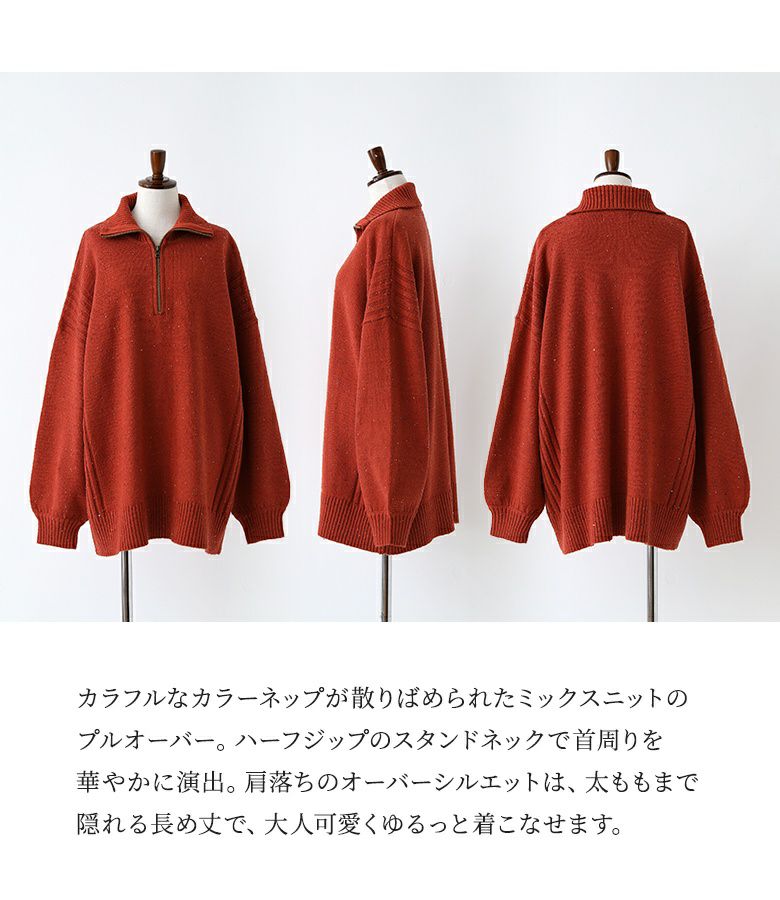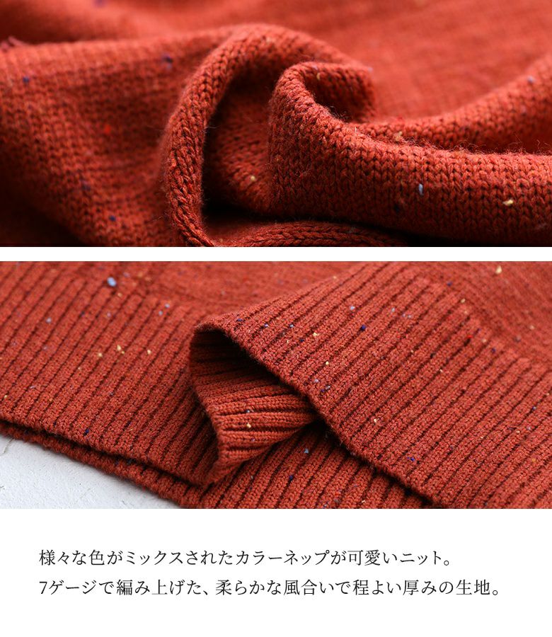 カラフルなカラーネップが散りばめられたミックスニットのプルオーバー。