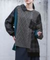 ニット3色とチェックの布帛生地をドッキングしたニットトップス。ニットの編地は、ケーブル編み、畔編み、天竺編みの3種類で印象的なデザインに仕立てました。胸ポケットや裾のアシンメトリーデザインや袖口までこだわった周りと差のつく一着に。