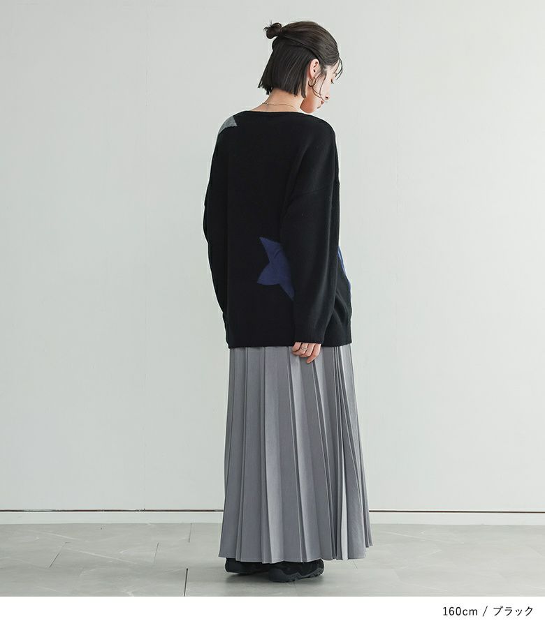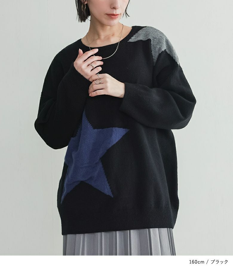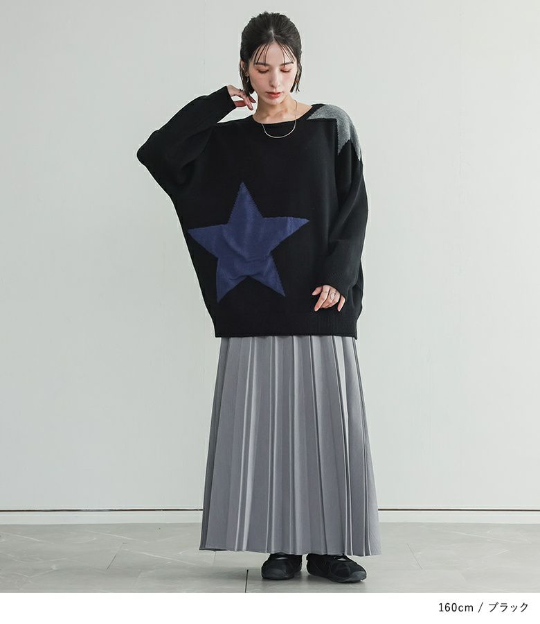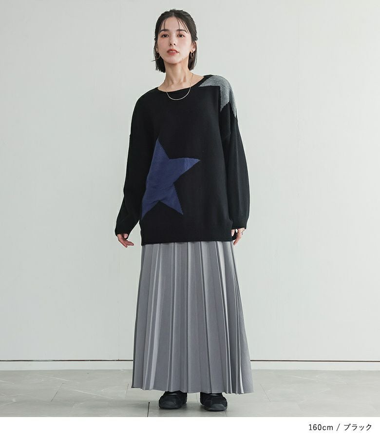 星柄がアクセントになってとても可愛いです。ゆったりしたシルエットで胸まわり、お尻まわりが気になりません。ぽっちゃり体型の私でも安心して着用できます。