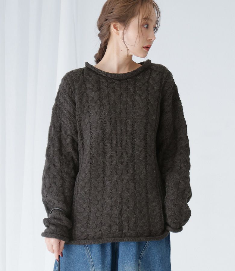 『50%OFFセール★OUKA SELECTローゲージケーブル編みニット』