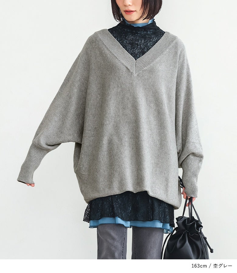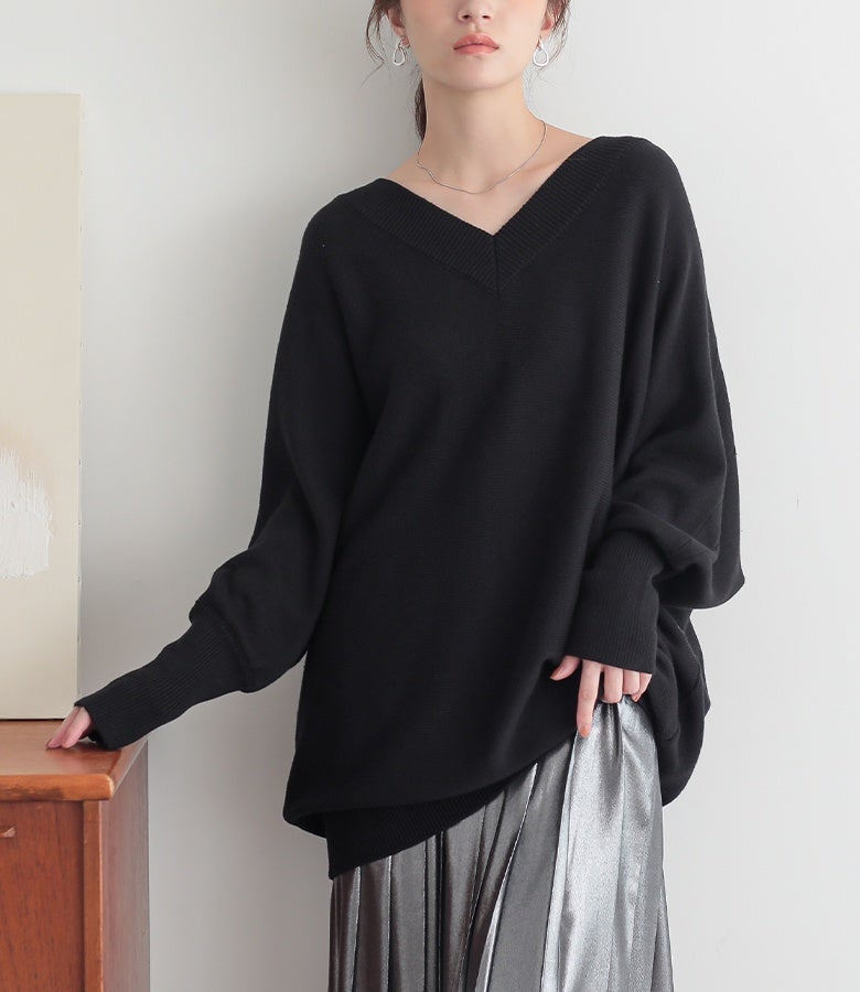 着回しも効かせてゆるっと可愛い≪n'OrLABEL≫ドルマンVネックニットです。