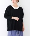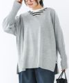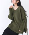 デコルテをすっきり魅せる深めのVネックライン。体のラインを隠しながら、長めのリブとスリットや落ち感のあるシルエットで着やせ効果も。
