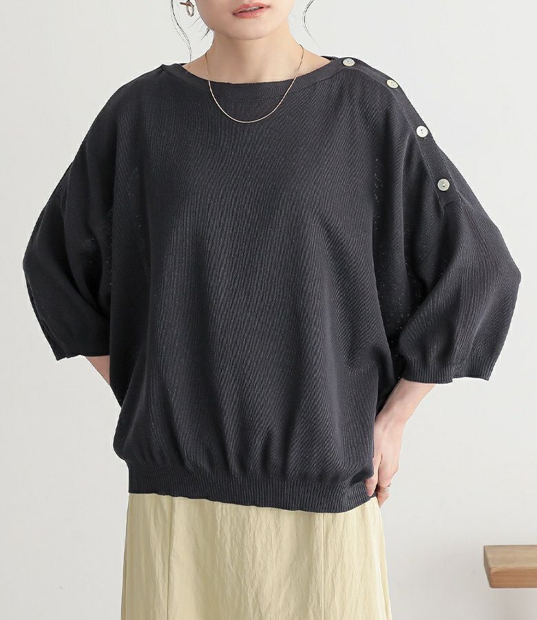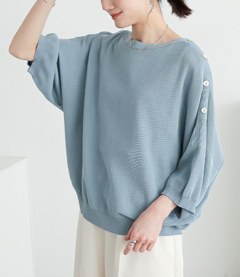 ゆるっと着られるドルマンシルエットのサマーニット。