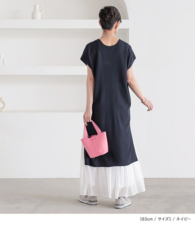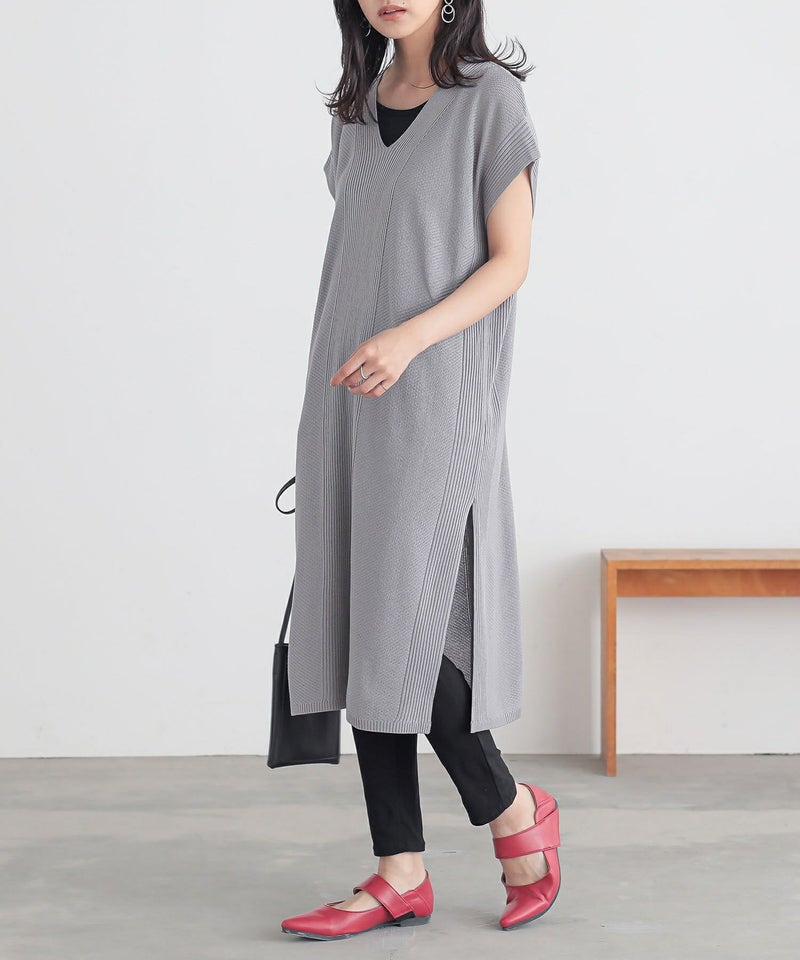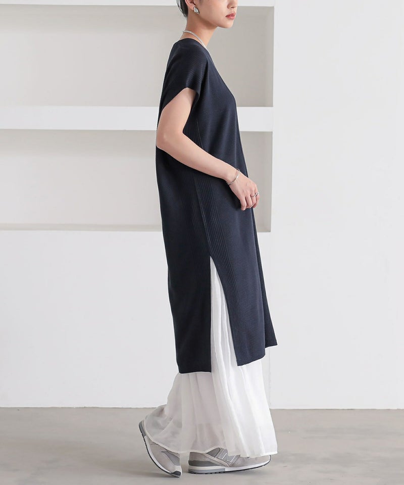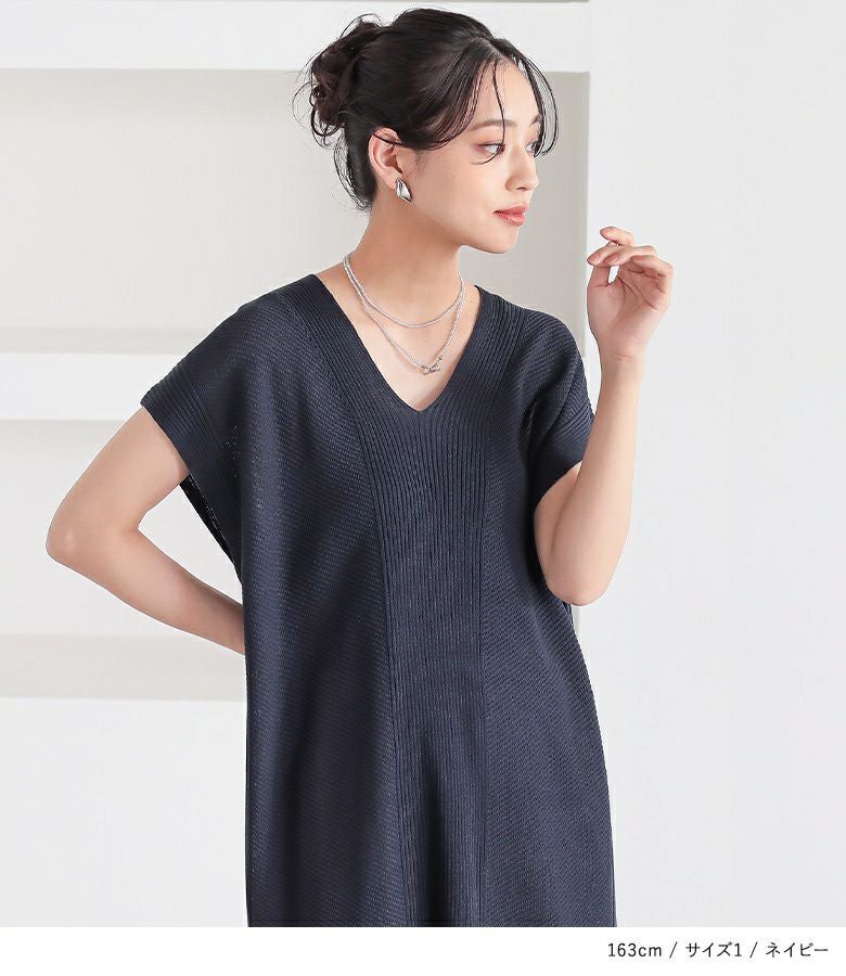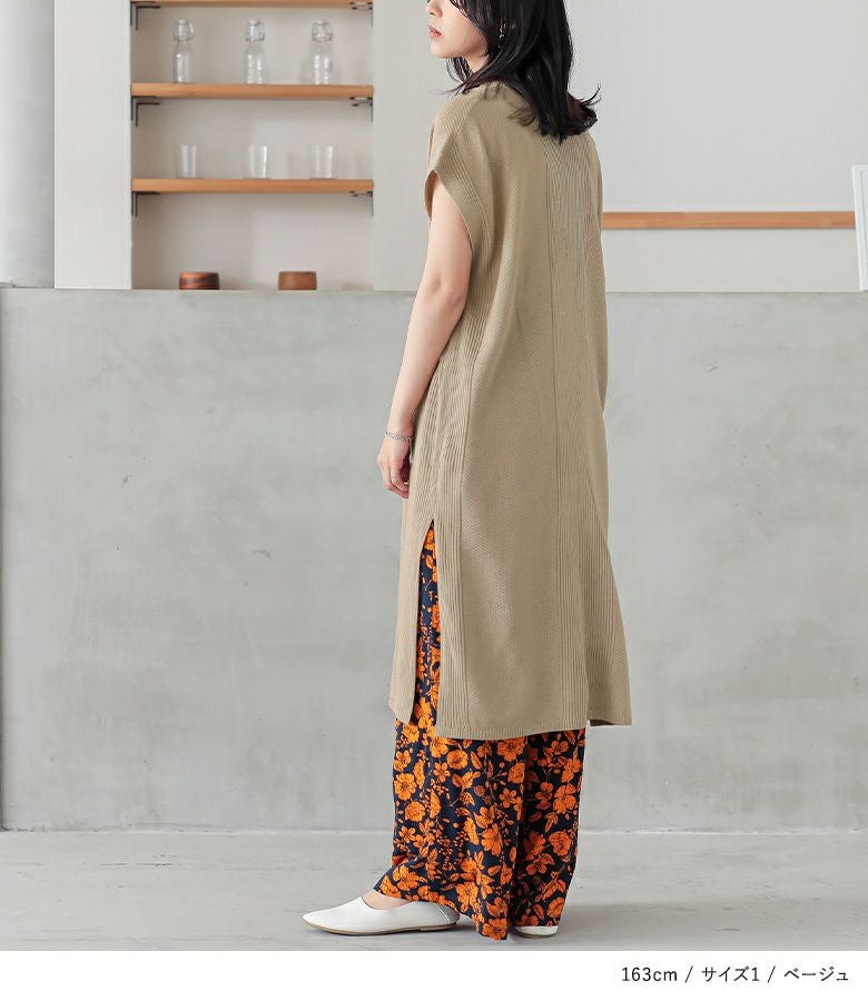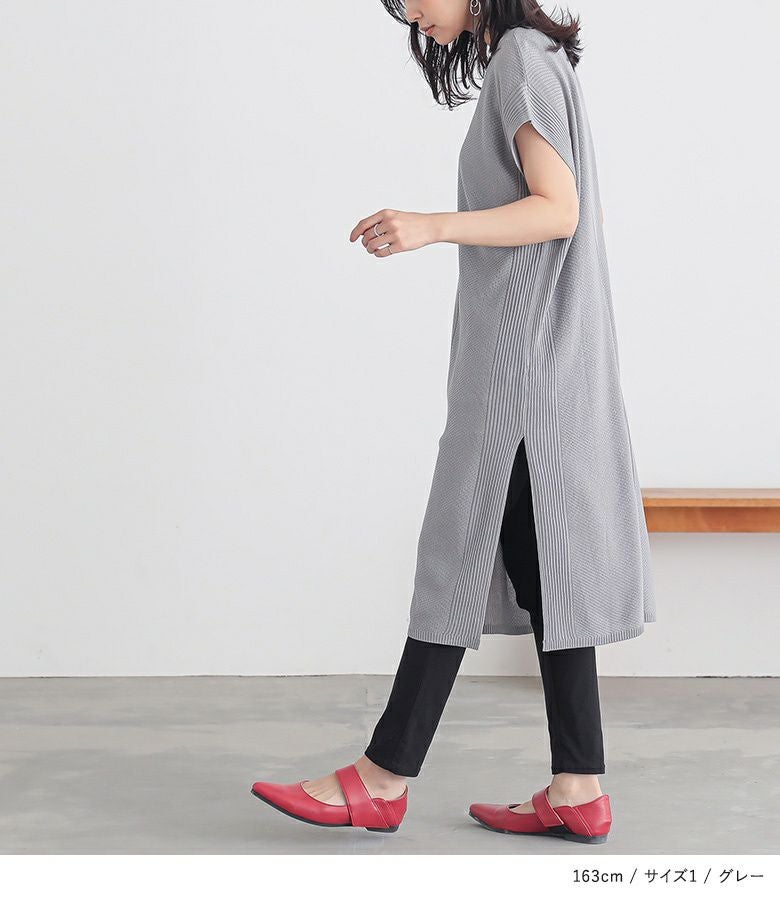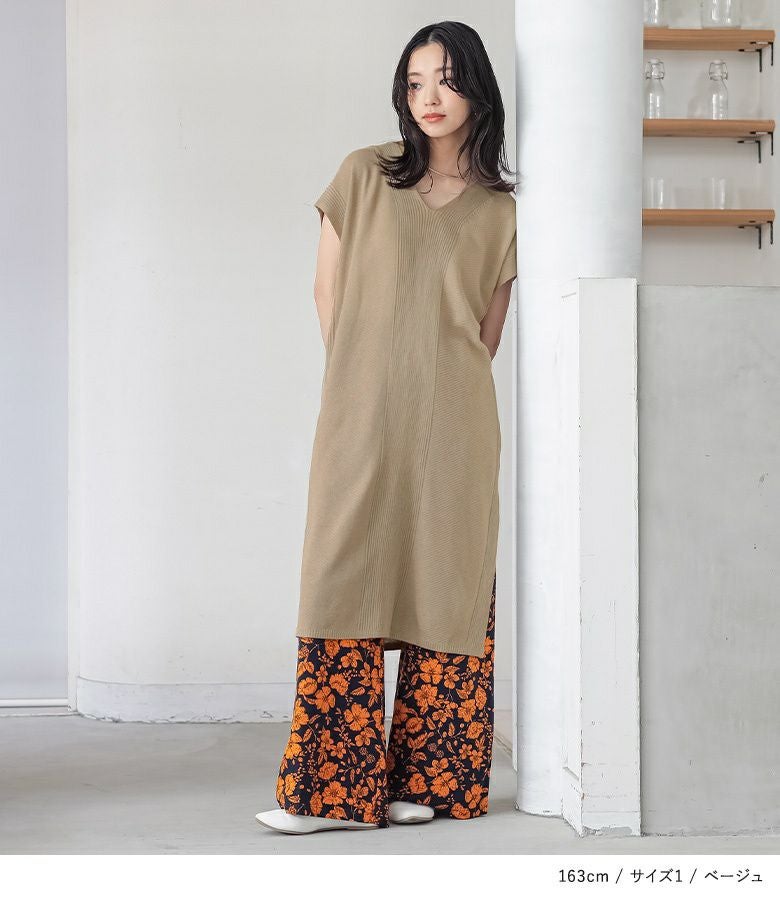 【普段着用】 Tops: M Bottoms: M/L | 【1】 袖丈:肩から10cm位 着丈:ひざ下3cm位 腕周り:ややゆったり バスト:ややゆったり 全体:スッキリ