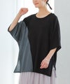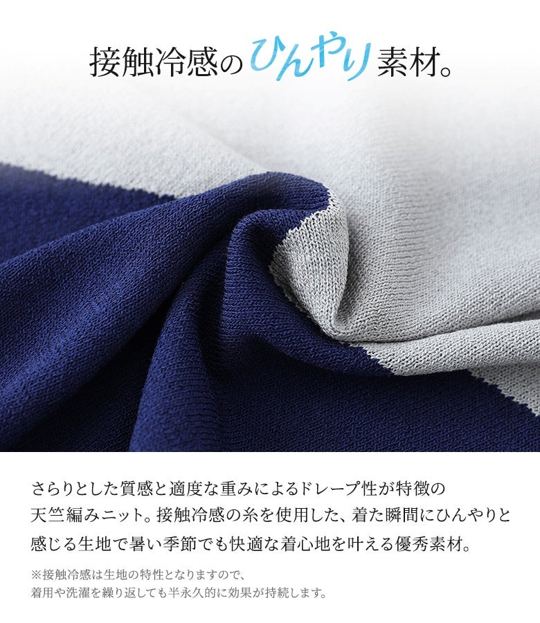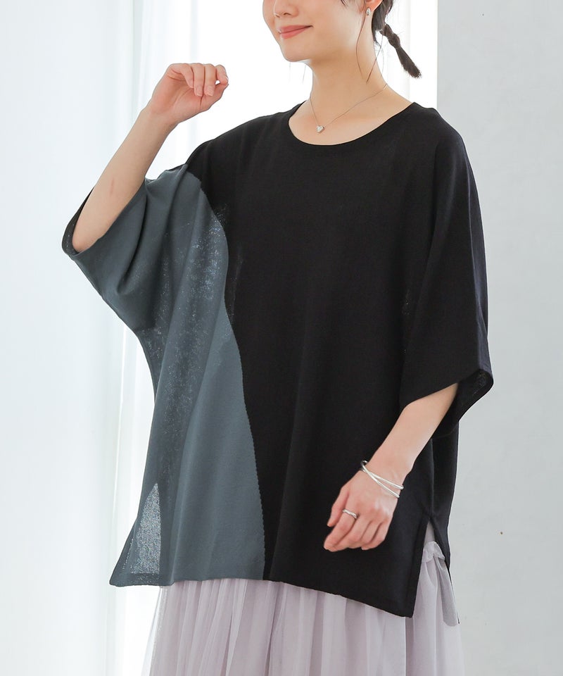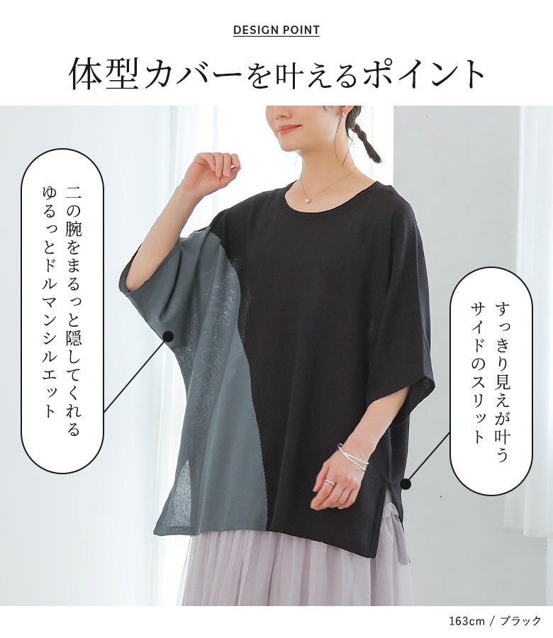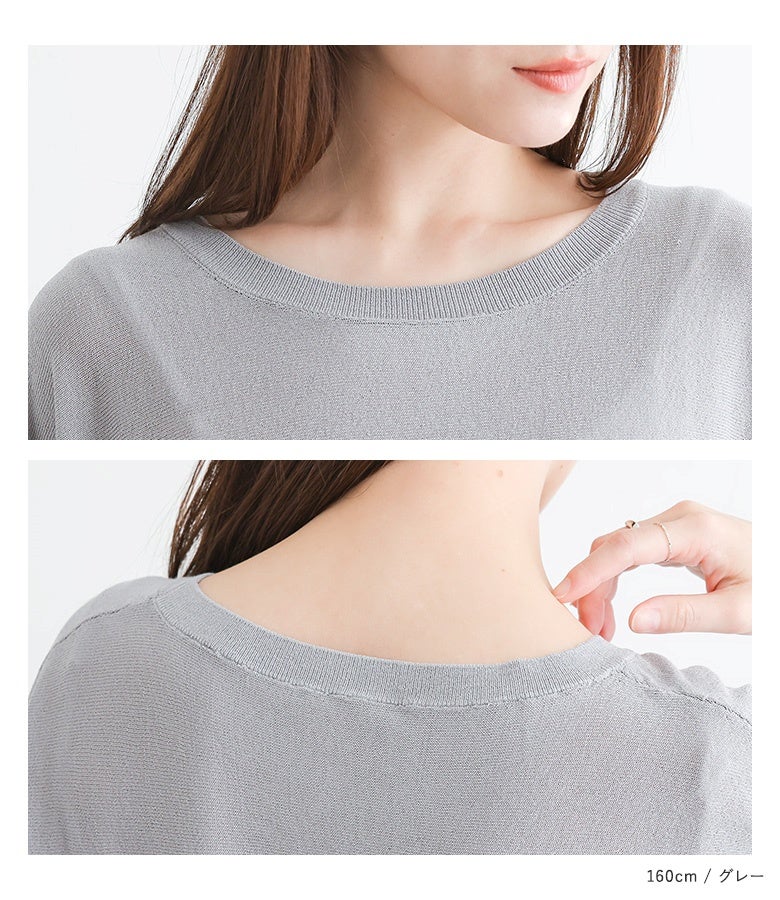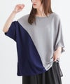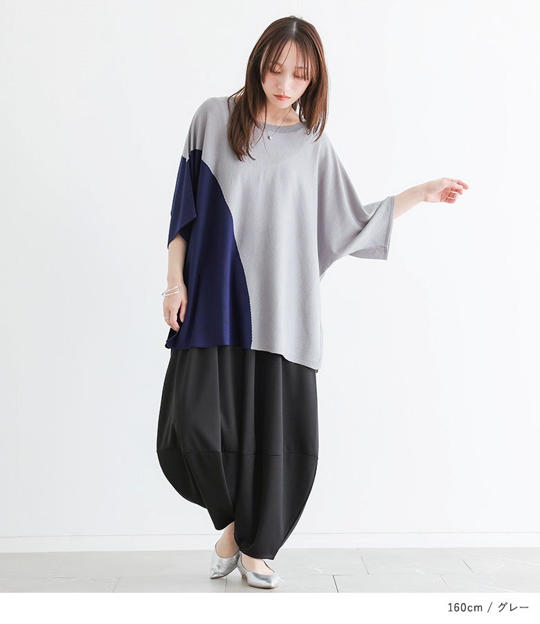 接触冷感生地でひんやりとした肌触りの配色ドルマンニット。