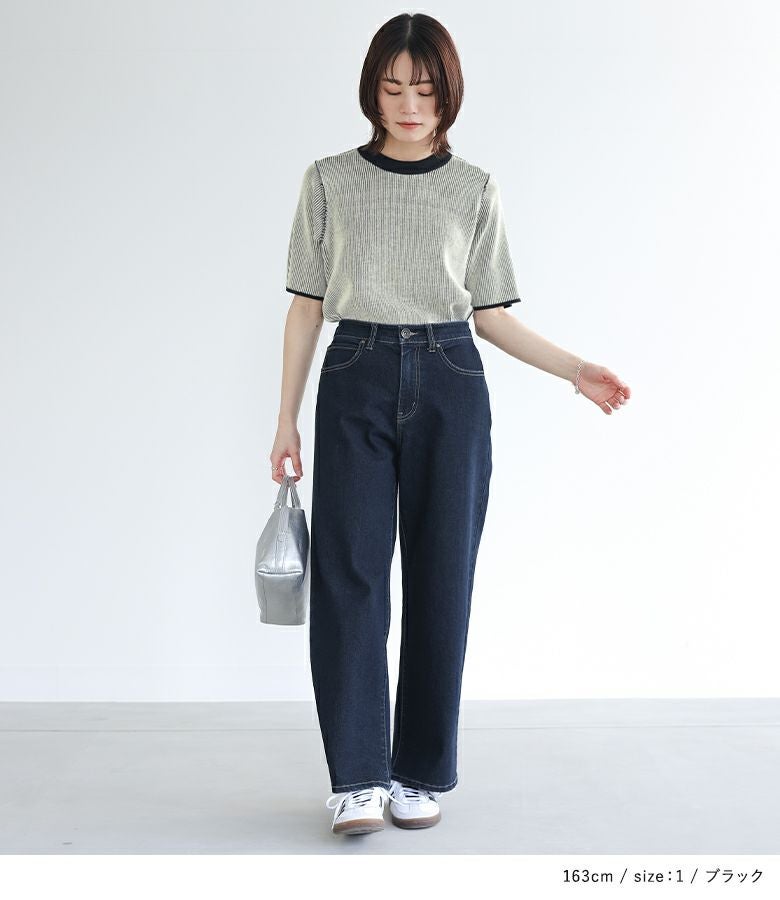 シンプルなアイテムと合わせるだけで配色感がお洒落に映えるデザイン。一枚でも、サロペットの中にも着られる2サイズ展開が嬉しいポイントです。