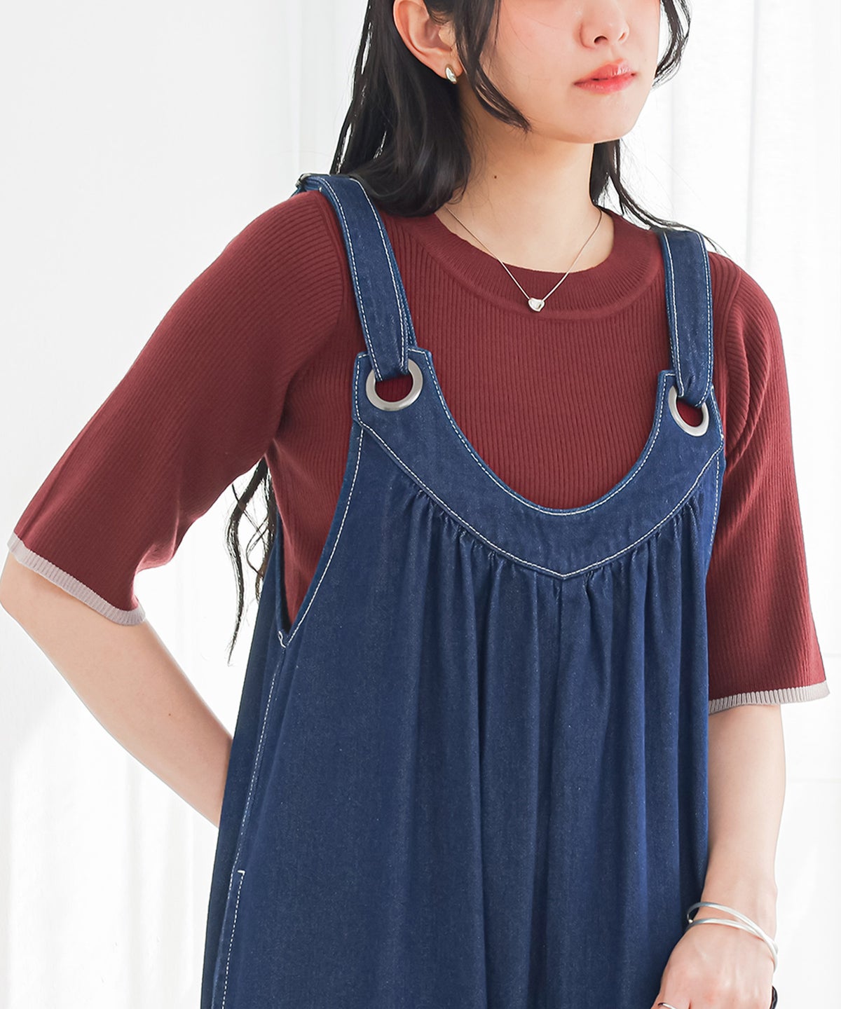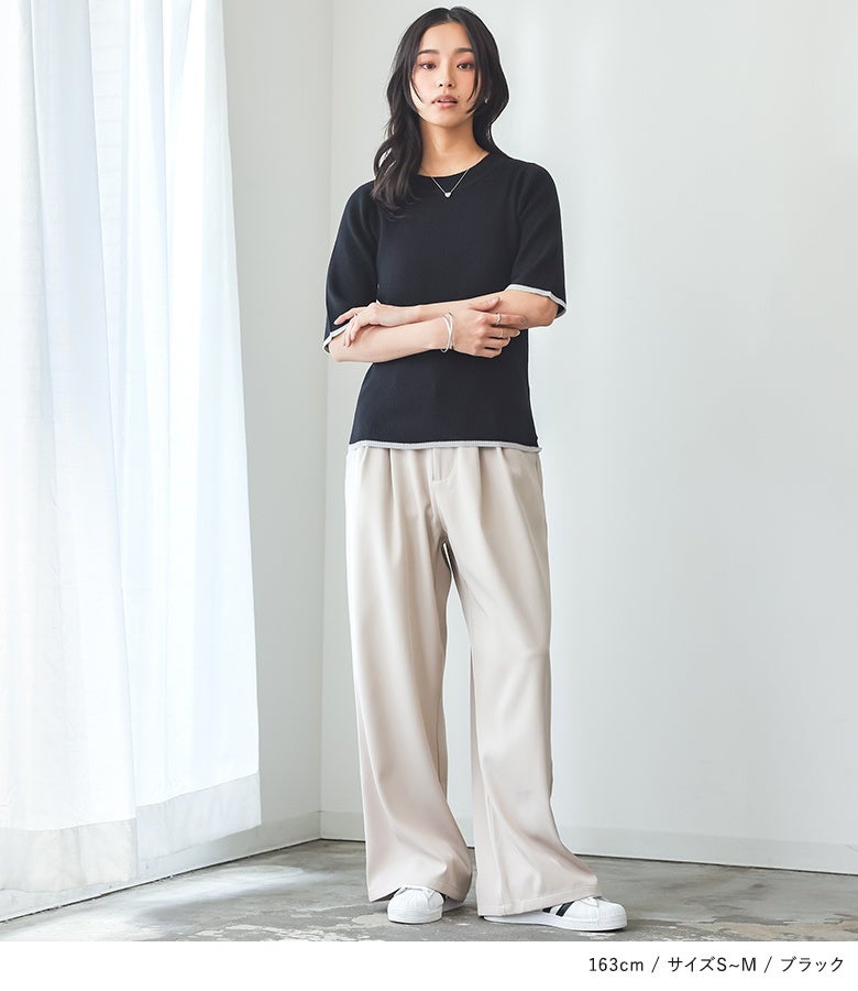 他の画像を見る 【4/14販売】選べる2サイズ展開!1枚着るだけでお洒落見えが叶うポロニット。 『n'OrLABELレイヤード風配色シアーポロニット』※メール便可※【10】 ¥ 3,590 税込 (0)