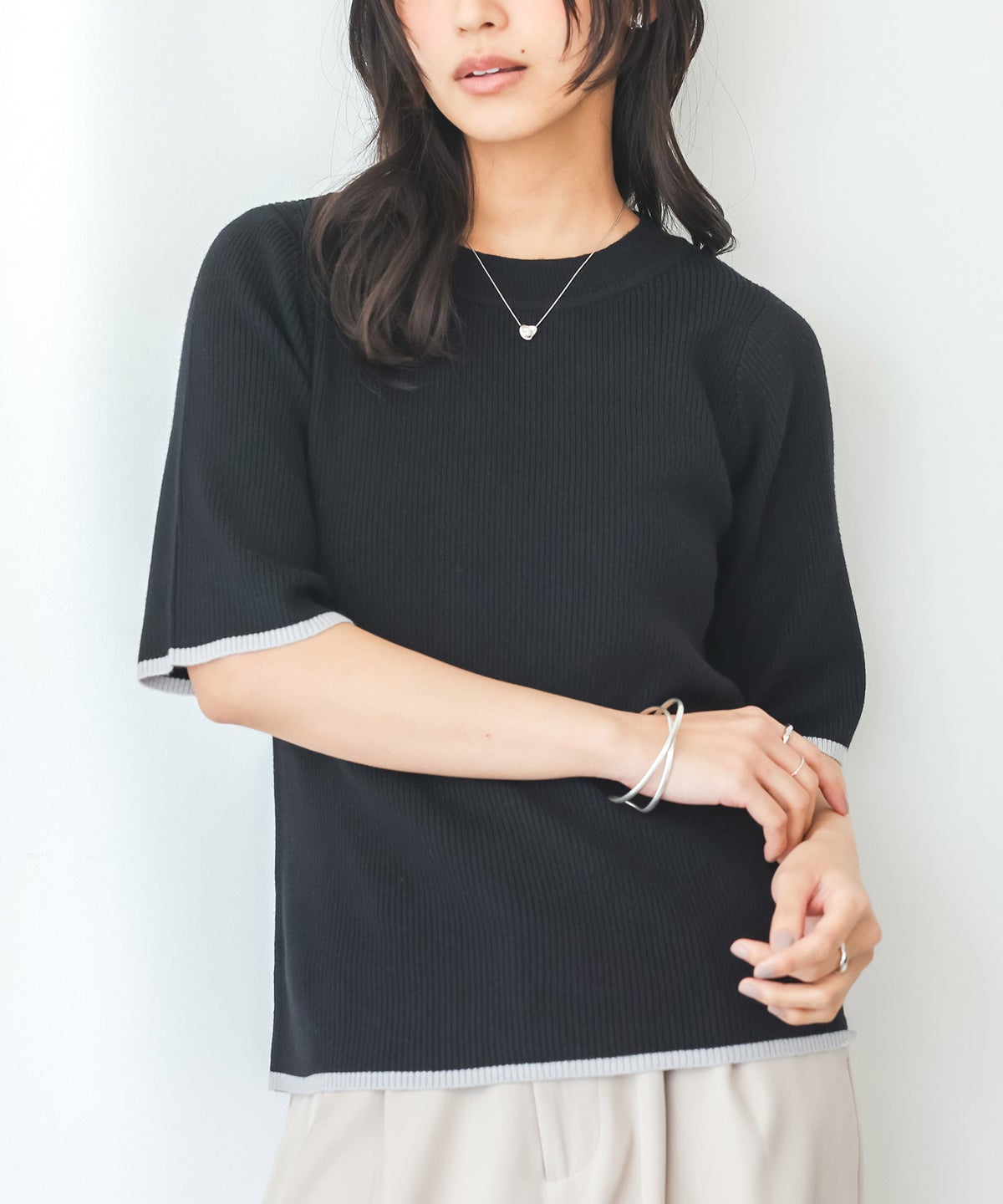 他の画像を見る 接触冷感生地でひんやりとした肌触りの配色ドルマンニット。 『n'OrLABEL冷感ドルマン配色ニット』※メール便可※【10】 ¥ 3,960 税込 販売期間 2026/04/11 10:00 〜 2027/04/02 23:59 (0)