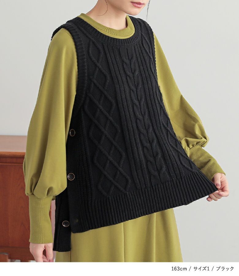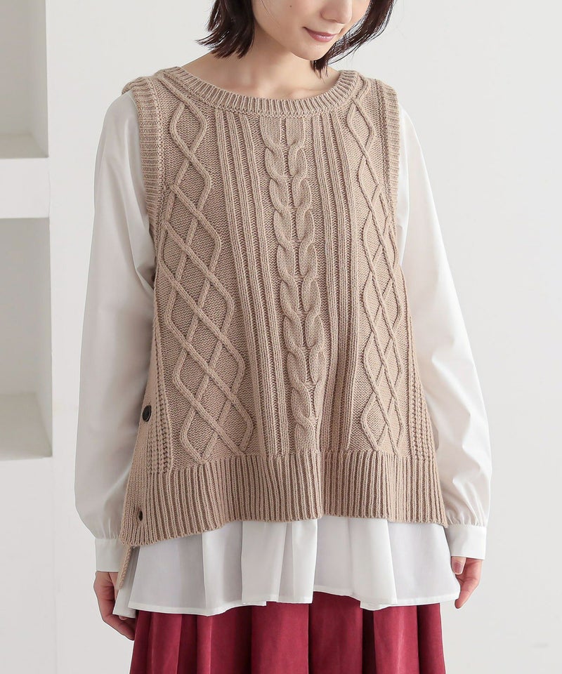 こだわりの丈感×シルエットバランスだからレイヤードコーデが気軽に取り入れられる。パフ袖とペプラム切替のブラウスは女性らしさを醸し出し、ボタンの開閉で着こなし方を楽しめるケーブルニットベストは、ぬかりなくお洒落を楽しめます。