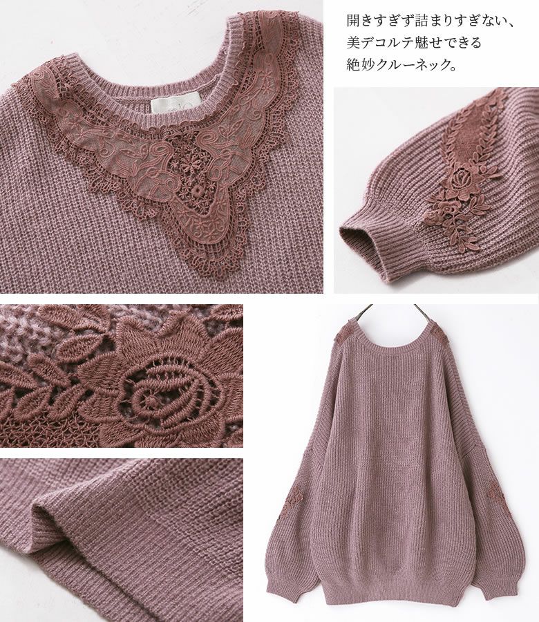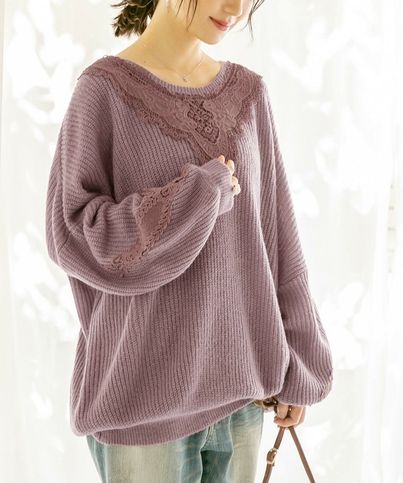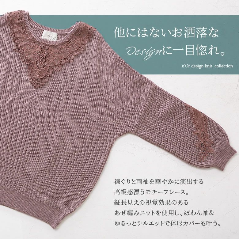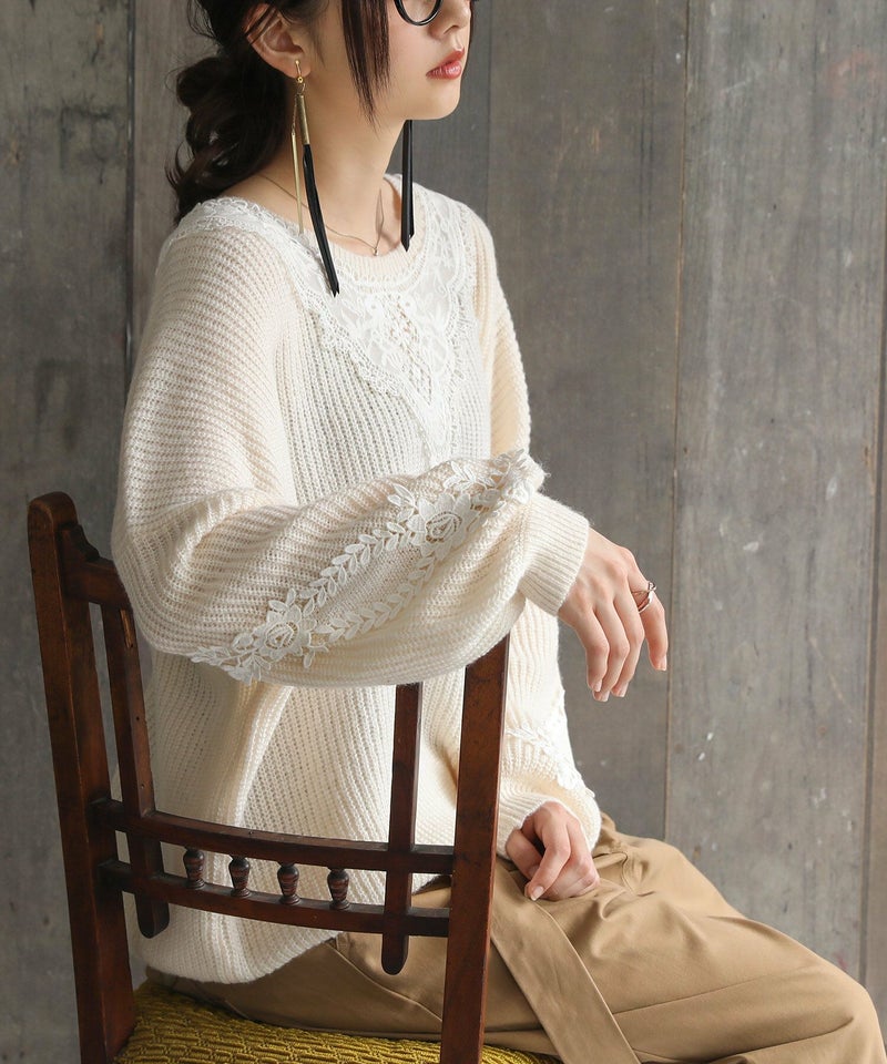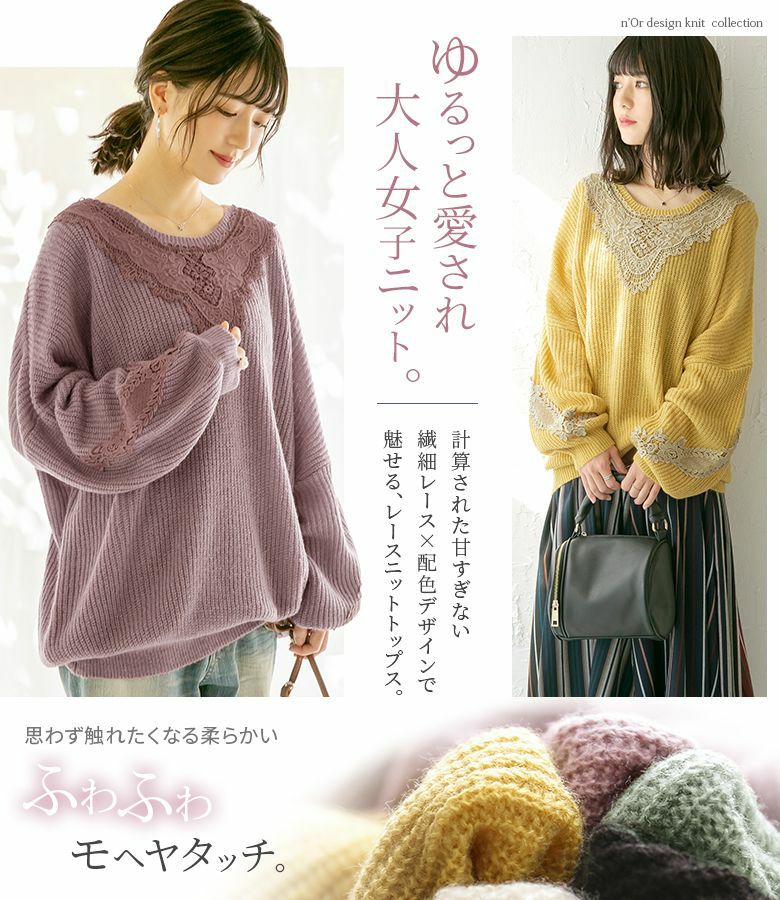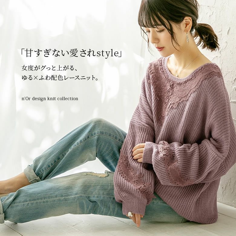 5. 『n'OrLABELレースデザイン畦編みニット』※返品交換不可※【メール便不可】