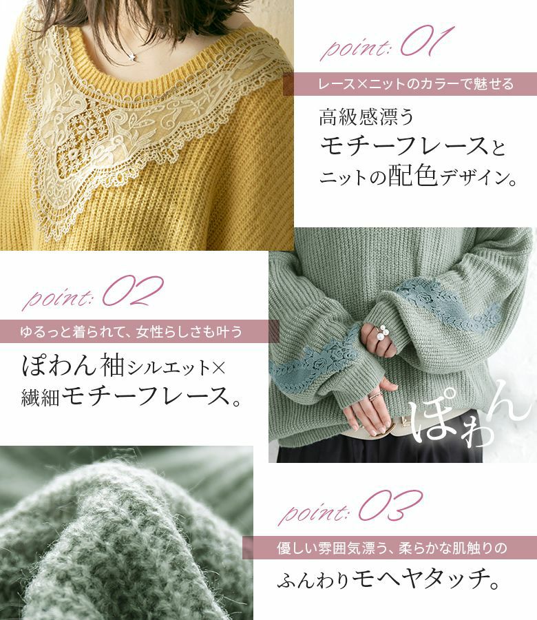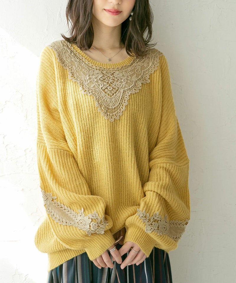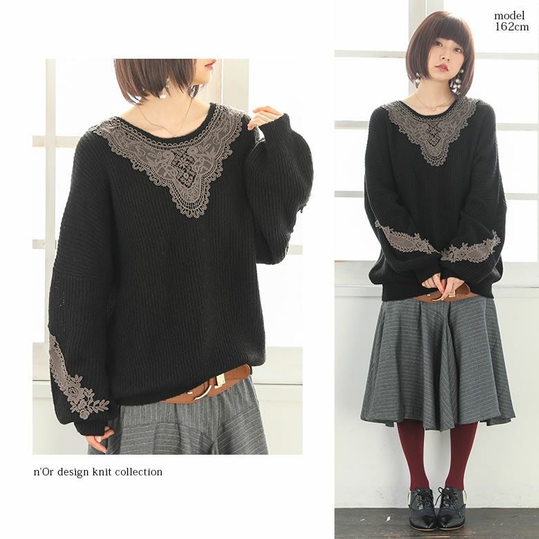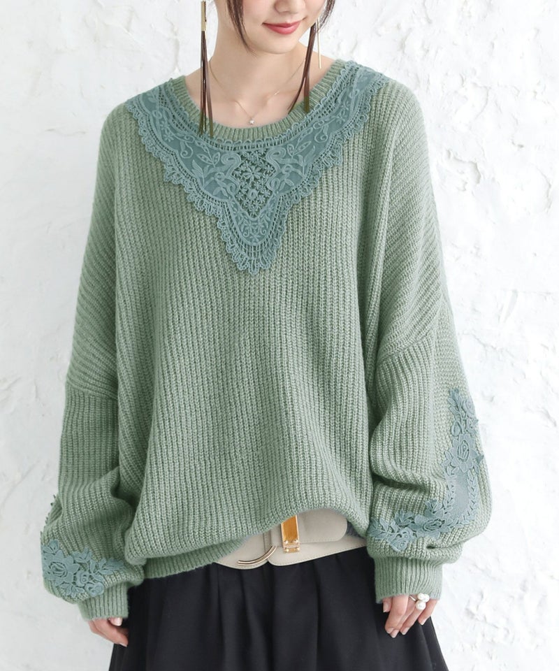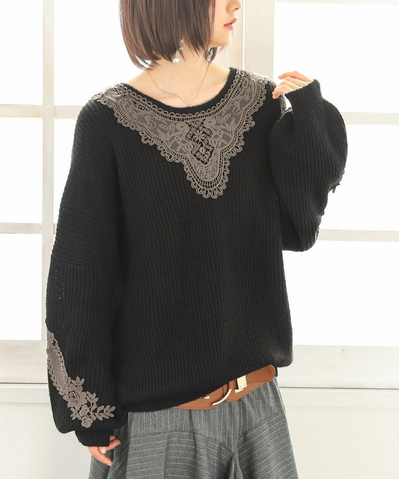 5. 『n'OrLABELレースデザイン畦編みニット』※返品交換不可※【メール便不可】