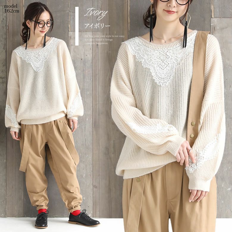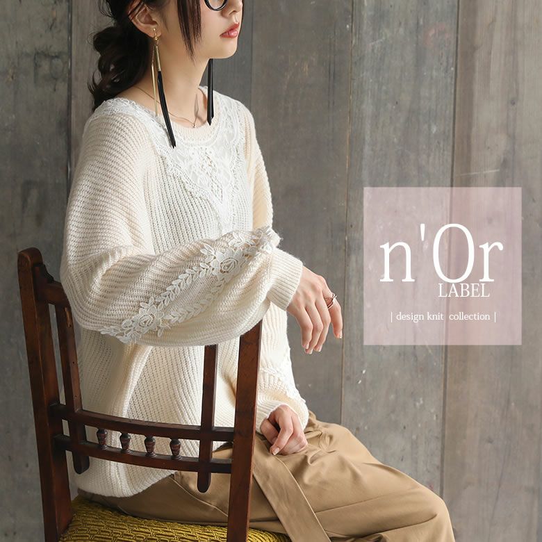 4. 『n'OrLABELレースデザイン畦編みニット』※返品交換不可※【メール便不可】