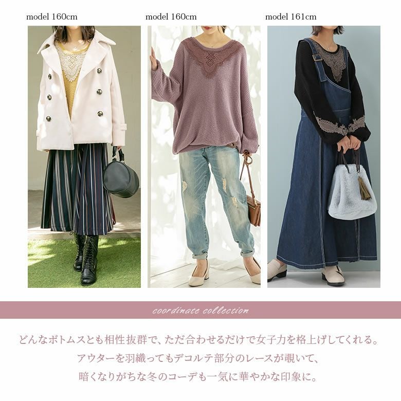 暖かいしとっても可愛いです! 毛玉ができるまでの期間が短いのと、首周りが若干広いのが気になりました。私はチラみせレースインナーを中に着ています。