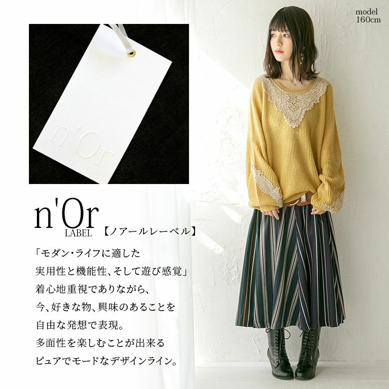 女度がグッと上がる≪n'OrLABEL≫レースデザイン畦編みニットです。