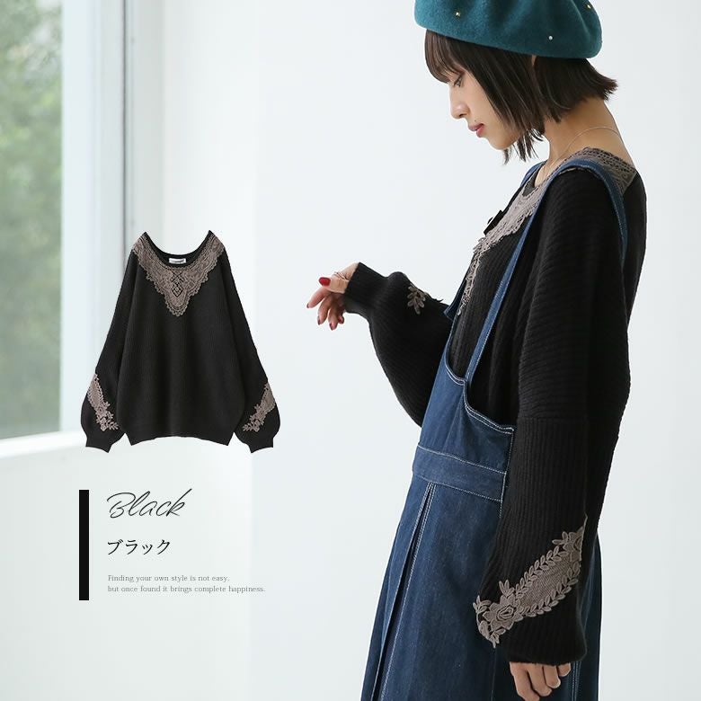 素材 本体:アクリル100% 袖レース、刺繍糸:綿100% 衿レース、基布:ナイロン100%