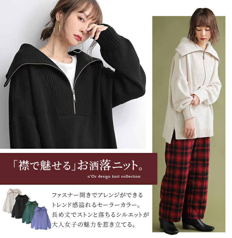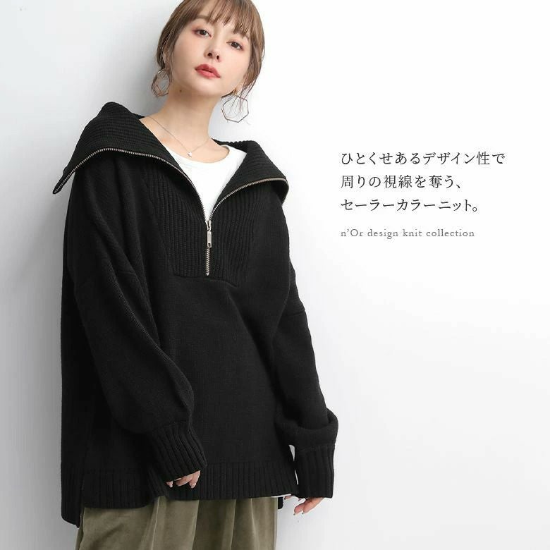 『n'OrLABELセーラーカラーハーフジップニット』