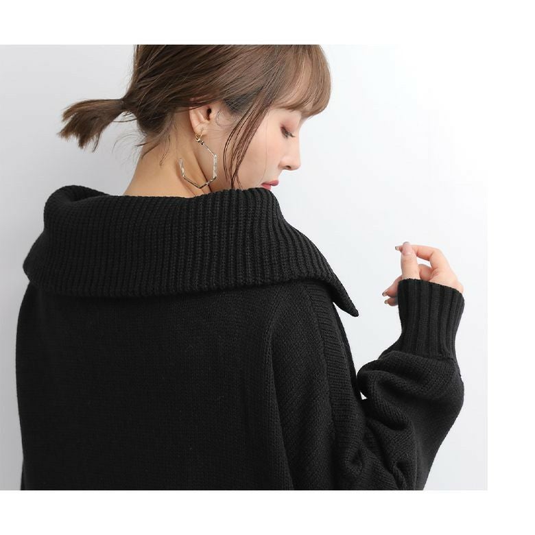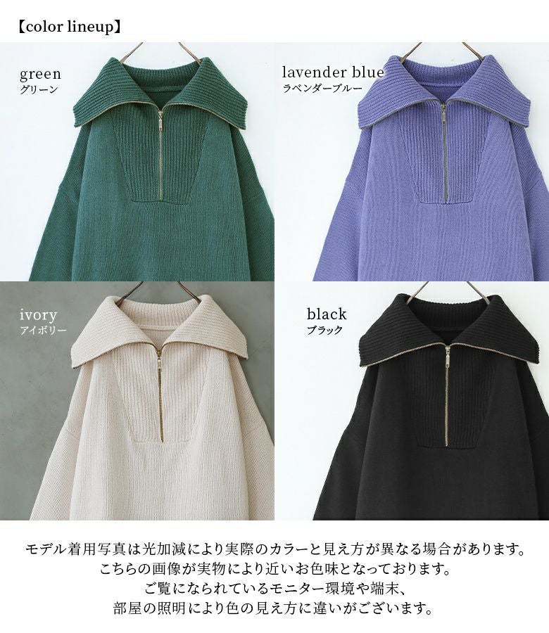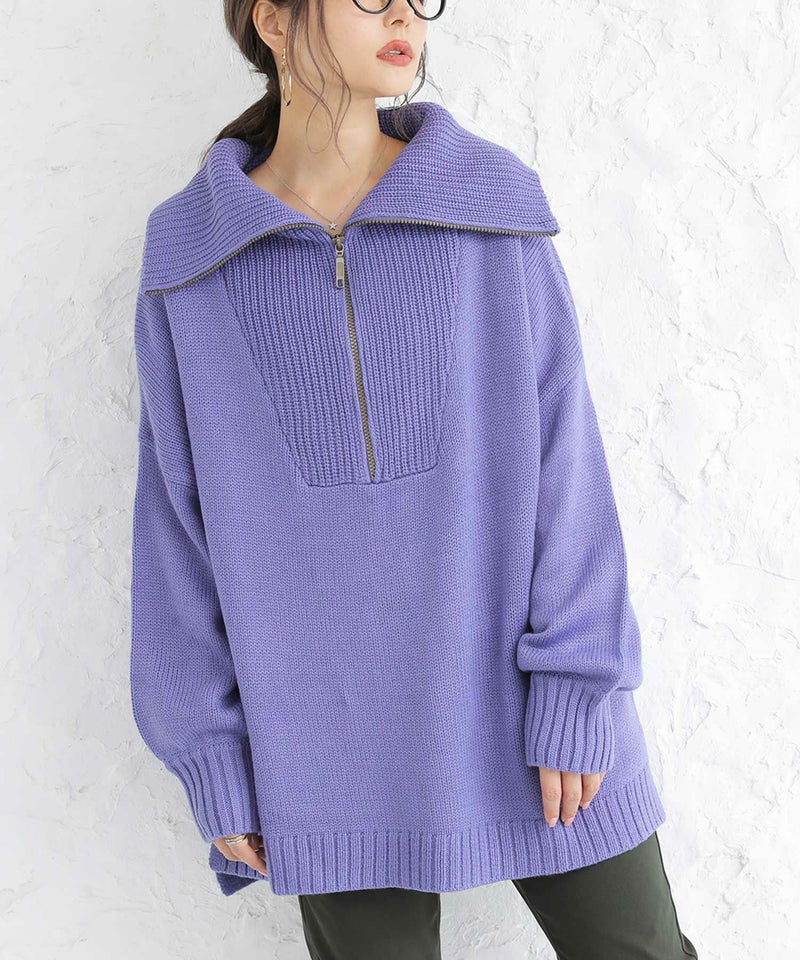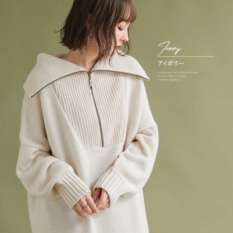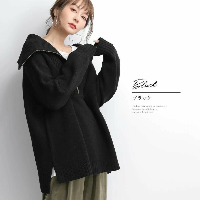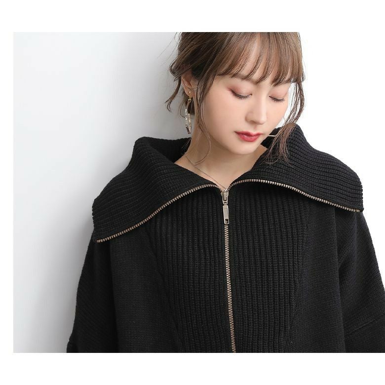 ファスナー開きでアレンジできるセラーカラーニット。