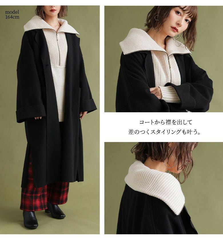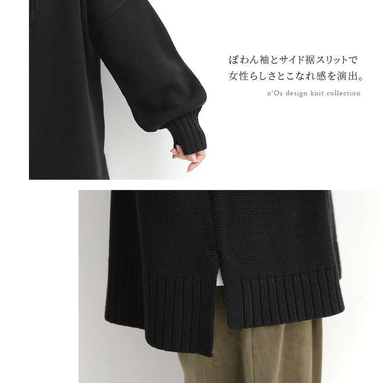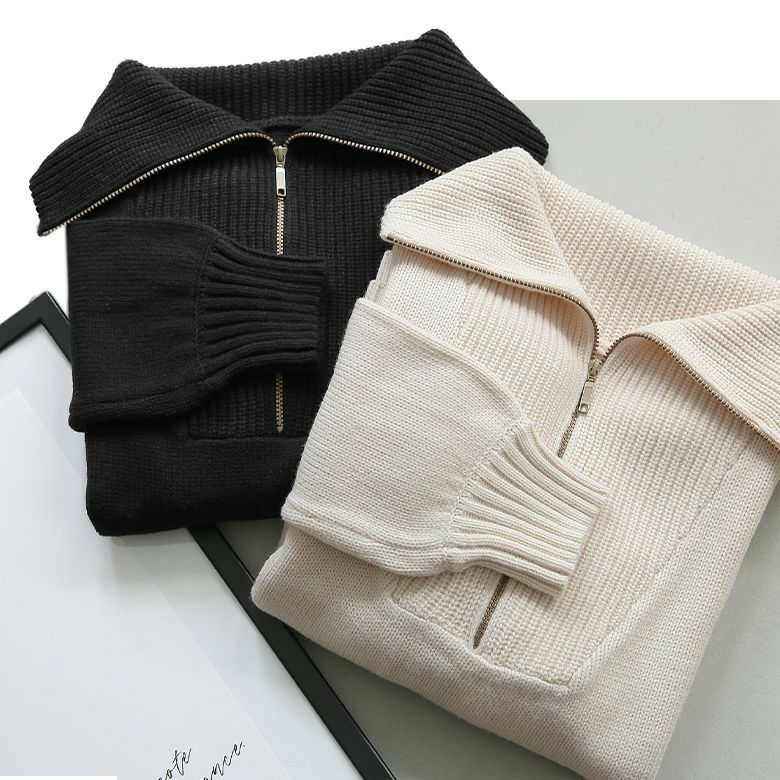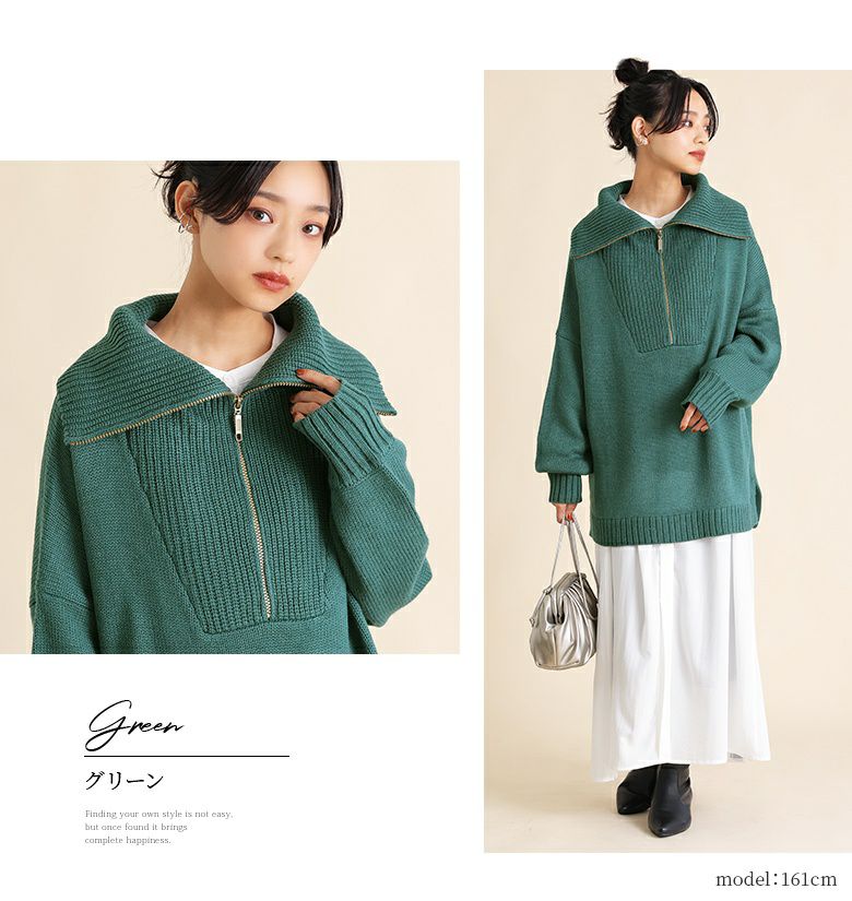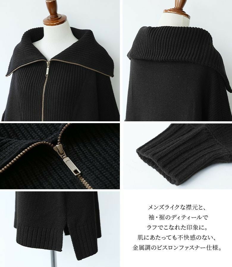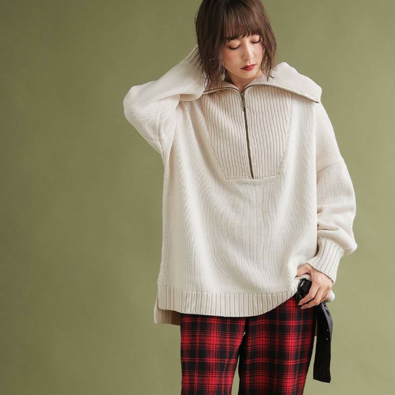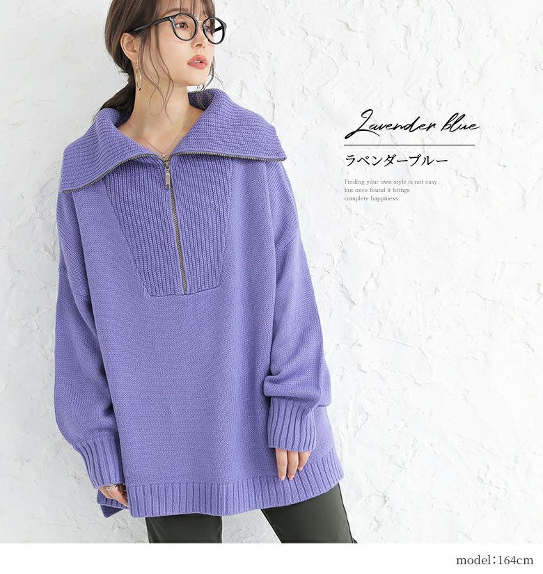 ファスナー開きでアレンジできるセラーカラーニット。