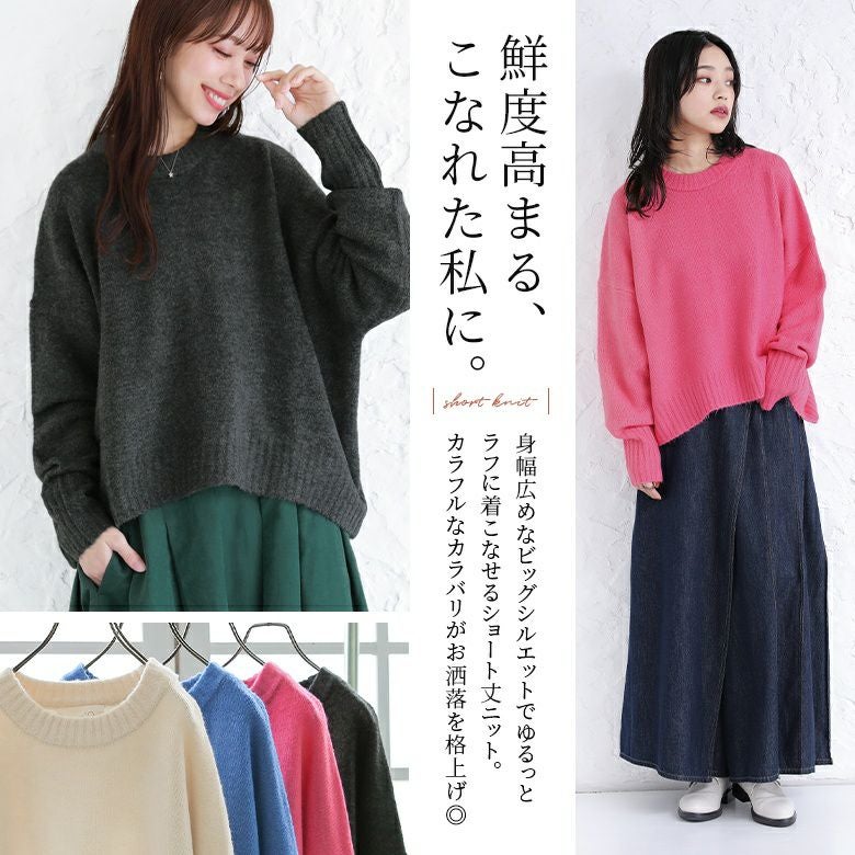カラフルなカラバリがお洒落を格上げする≪n'OrLABEL≫ビッグシルエットショート丈ニットです。