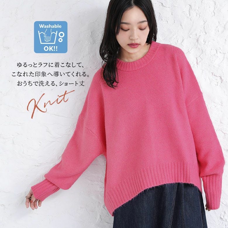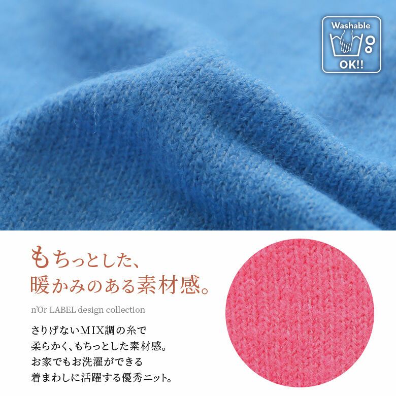さりげないMIX調の糸で、柔らかくもちっとした素材感の肌触りが良いニットを使用。ウォッシャブルだから気兼ねなくおうちでも洗濯ができて、着回しに活躍すること間違いなしです♪