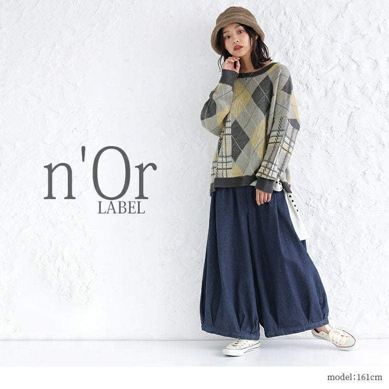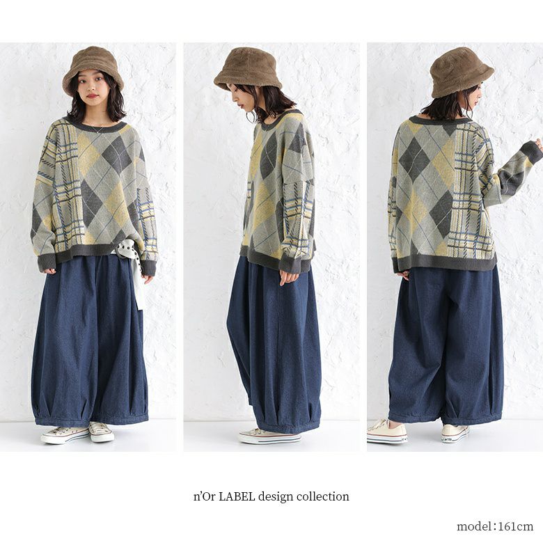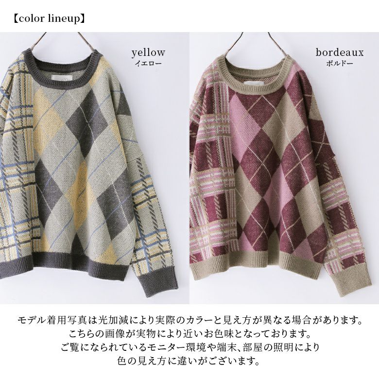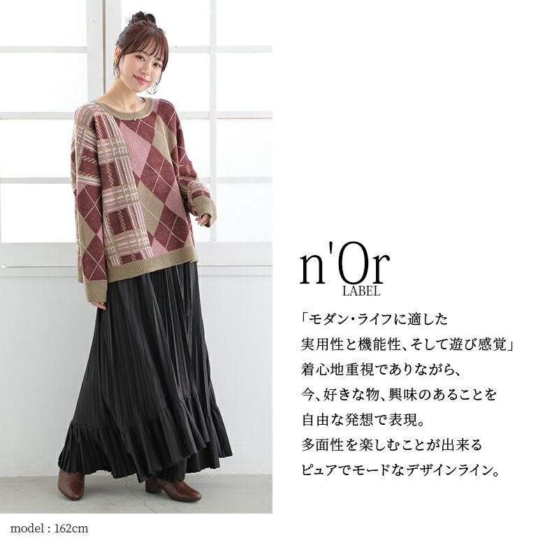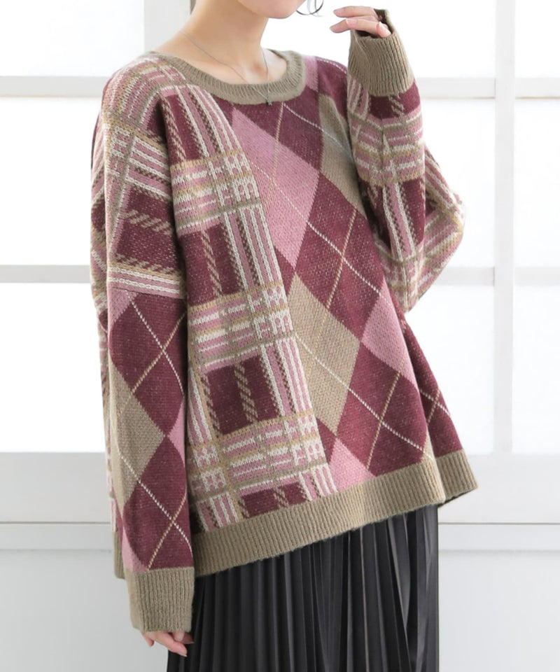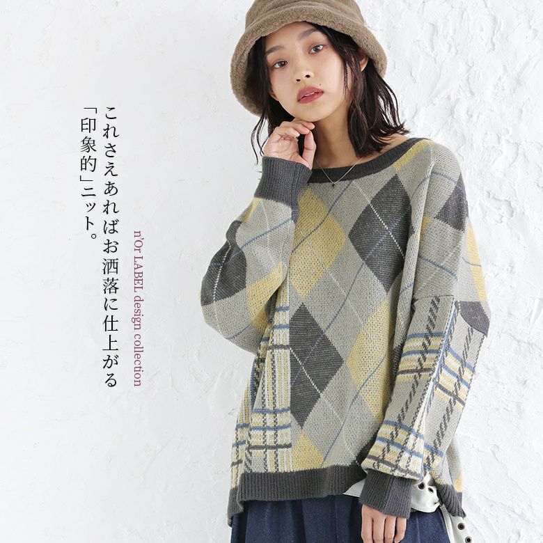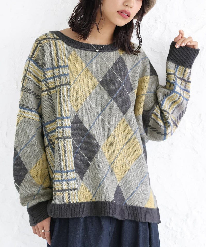 『n'OrLABELアーガイル×チェック柄切替ニット』