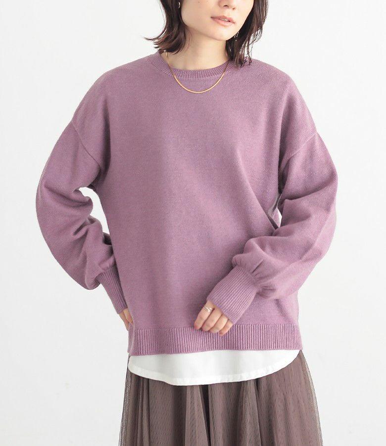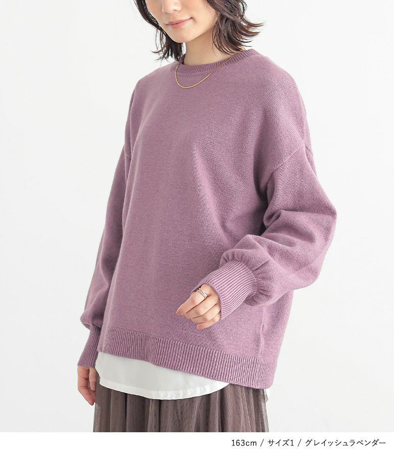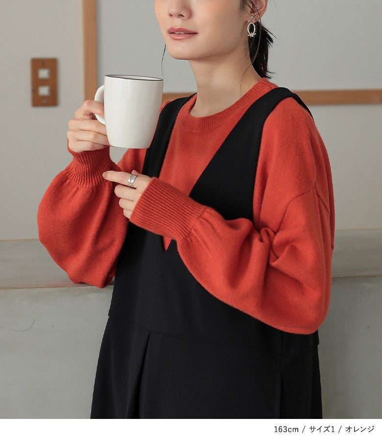 差し色投入でお洒落度上がる、ぽわん袖カラーニット♪