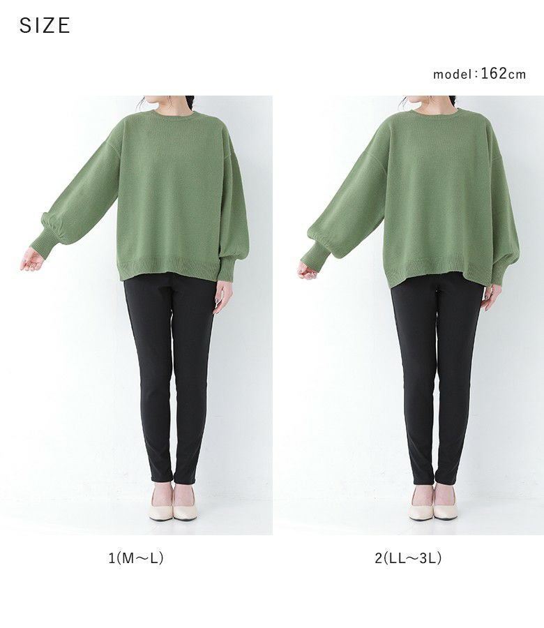 1(M~L)は、程よいゆとりをもって楽に着られました。2(LL~3L)は、大きすぎないゆったり感で着られました。もちっとしたニットで着心地が良かったです。私の場合は、1(M~L)を選びます。