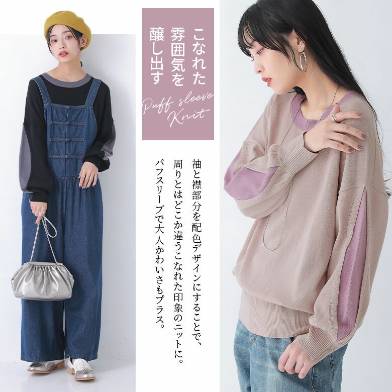 ひとクセアクセントを効かせたセンス高まる配色スリーブニット♪