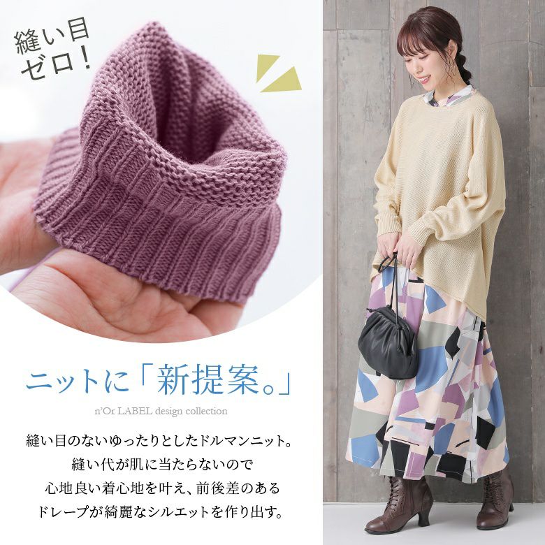こなれ感も着心地の良さも手に入る≪n'OrLABEL≫シームレスドルマンニットです。