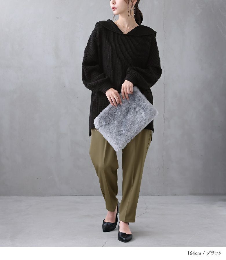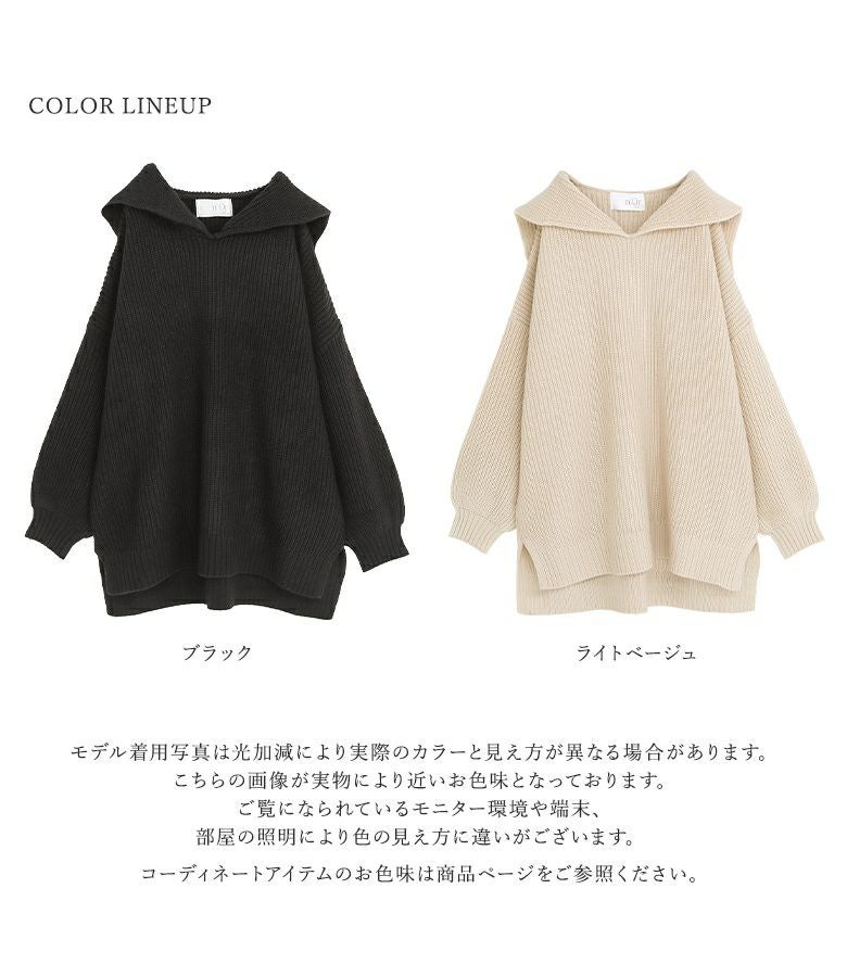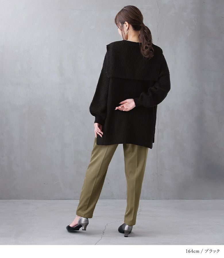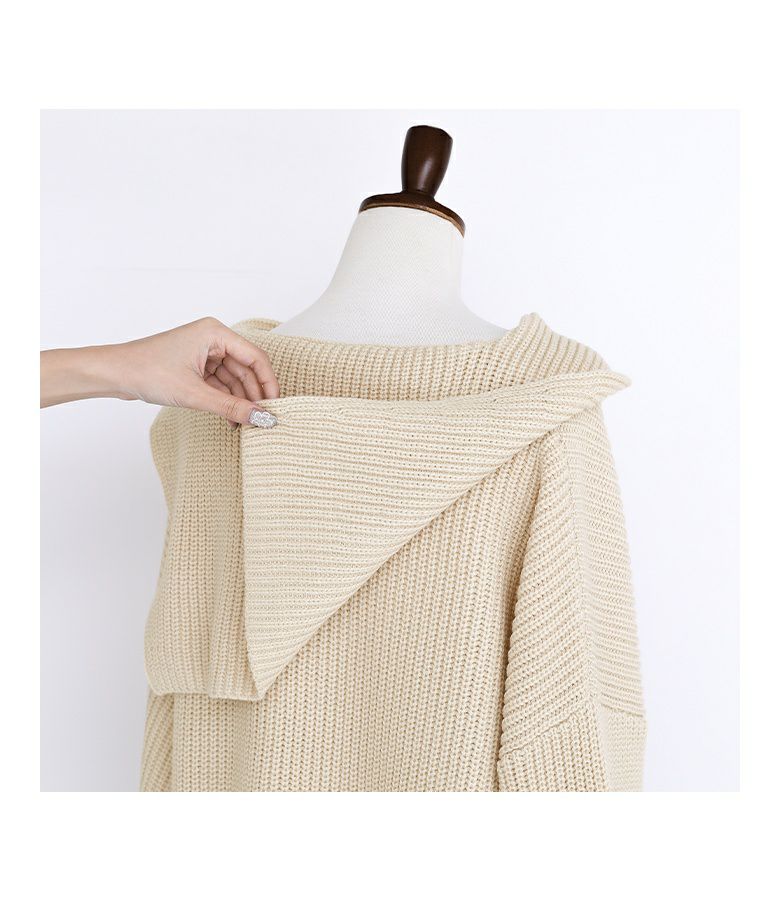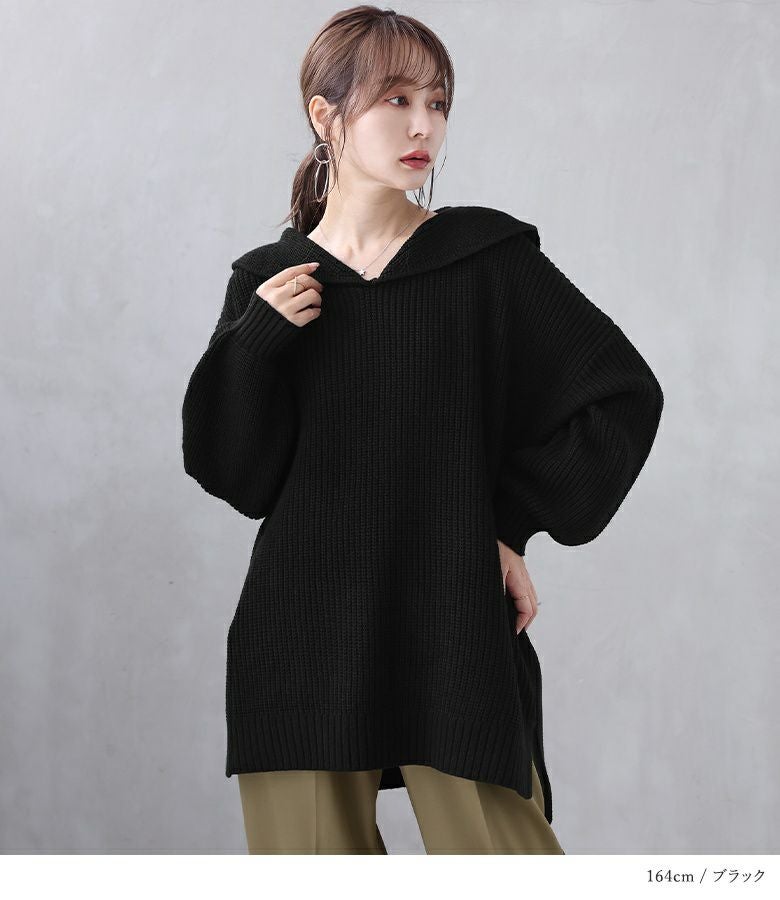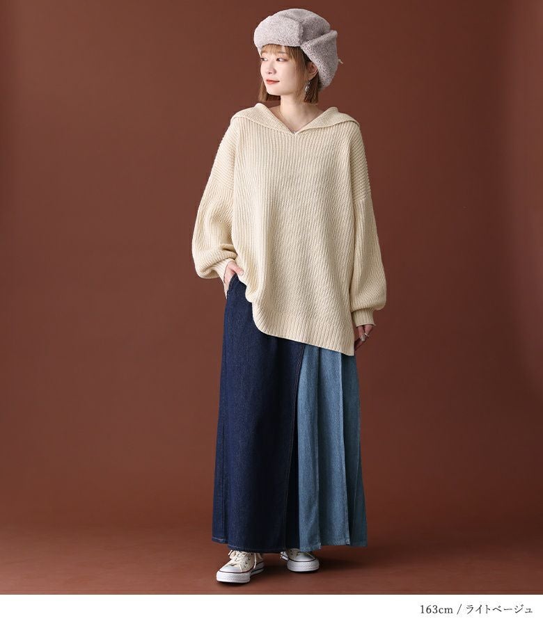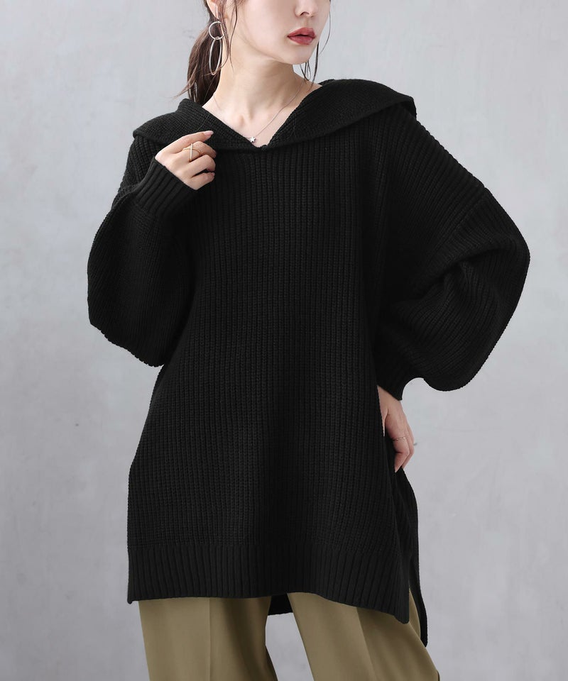 シンプルな大きめセーラーカラーでこなれ感のあるスタイリングに仕立ててくれる、ざっくり編地のゆるっとニット。