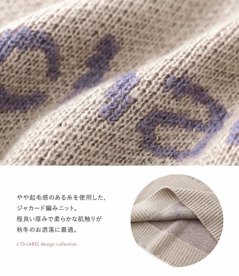 やや起毛感のある糸を使用した、ジャカード編みニットは、程よい厚みで柔らかな肌触りが心地良い素材感です。