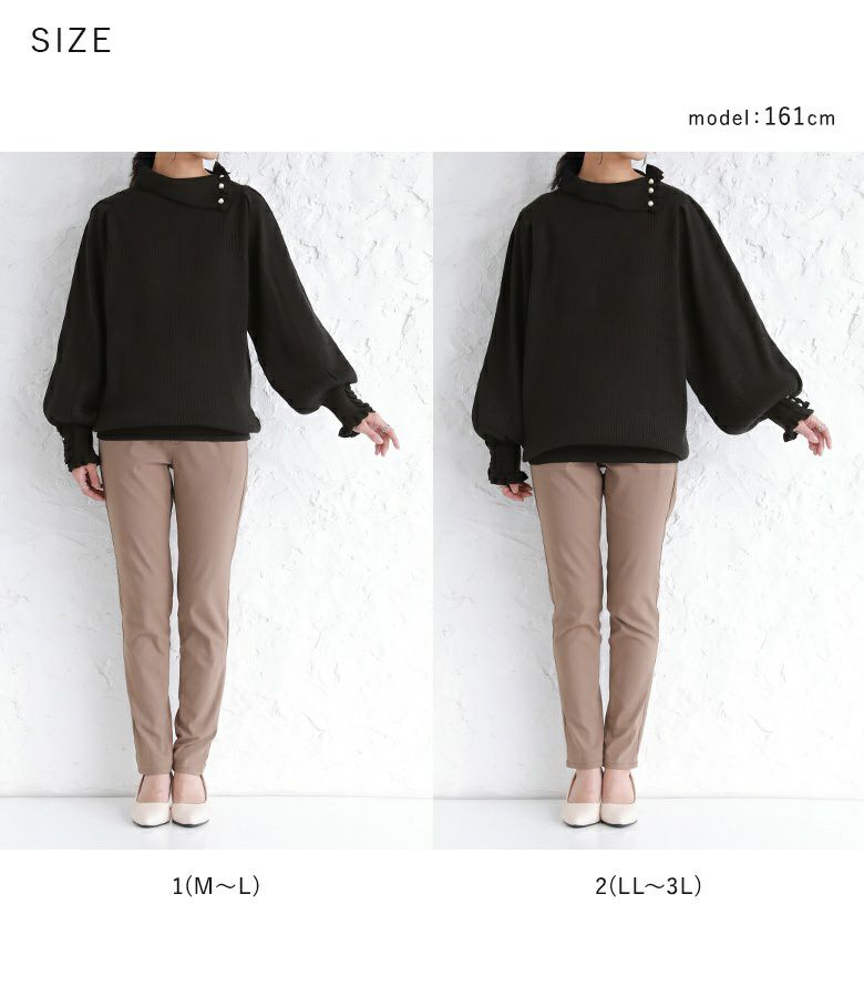 選べるM~3Lサイズ展開!大人の甘さ惹き出すフェイクパール付きニット。