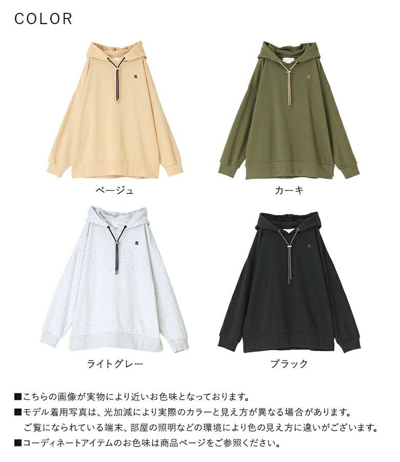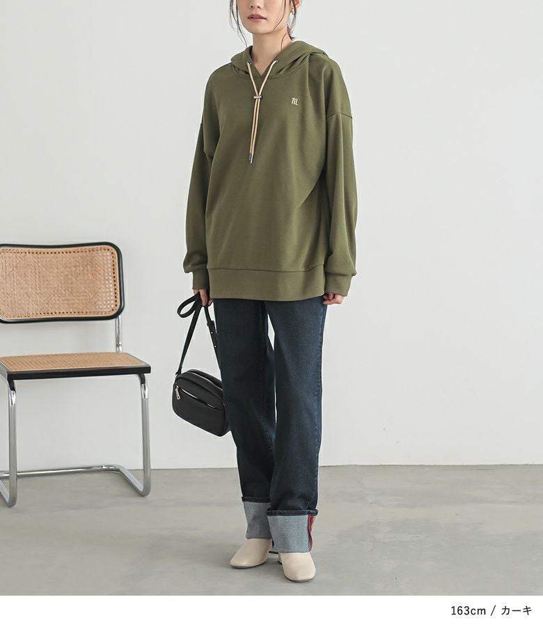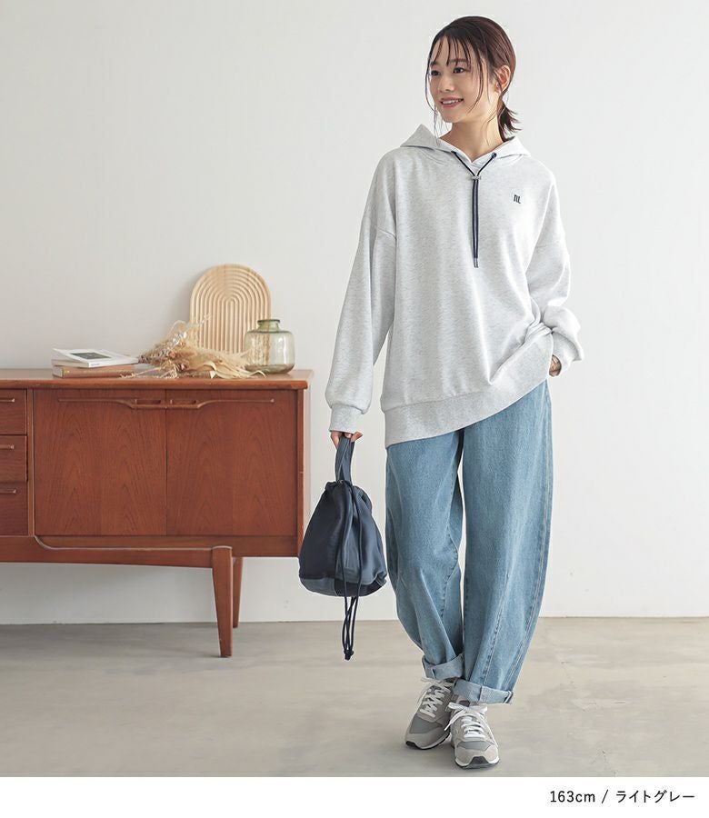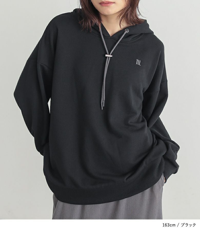 ワンポイントロゴとストッパー付きの紐がアクセントになった大人の為のパーカー。