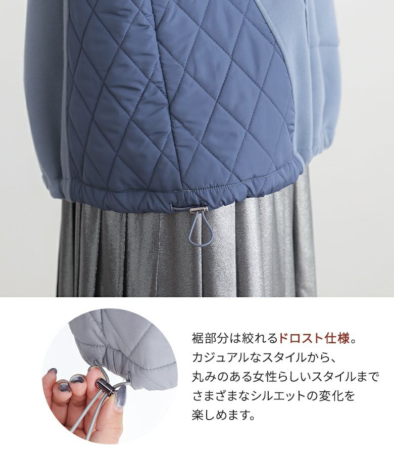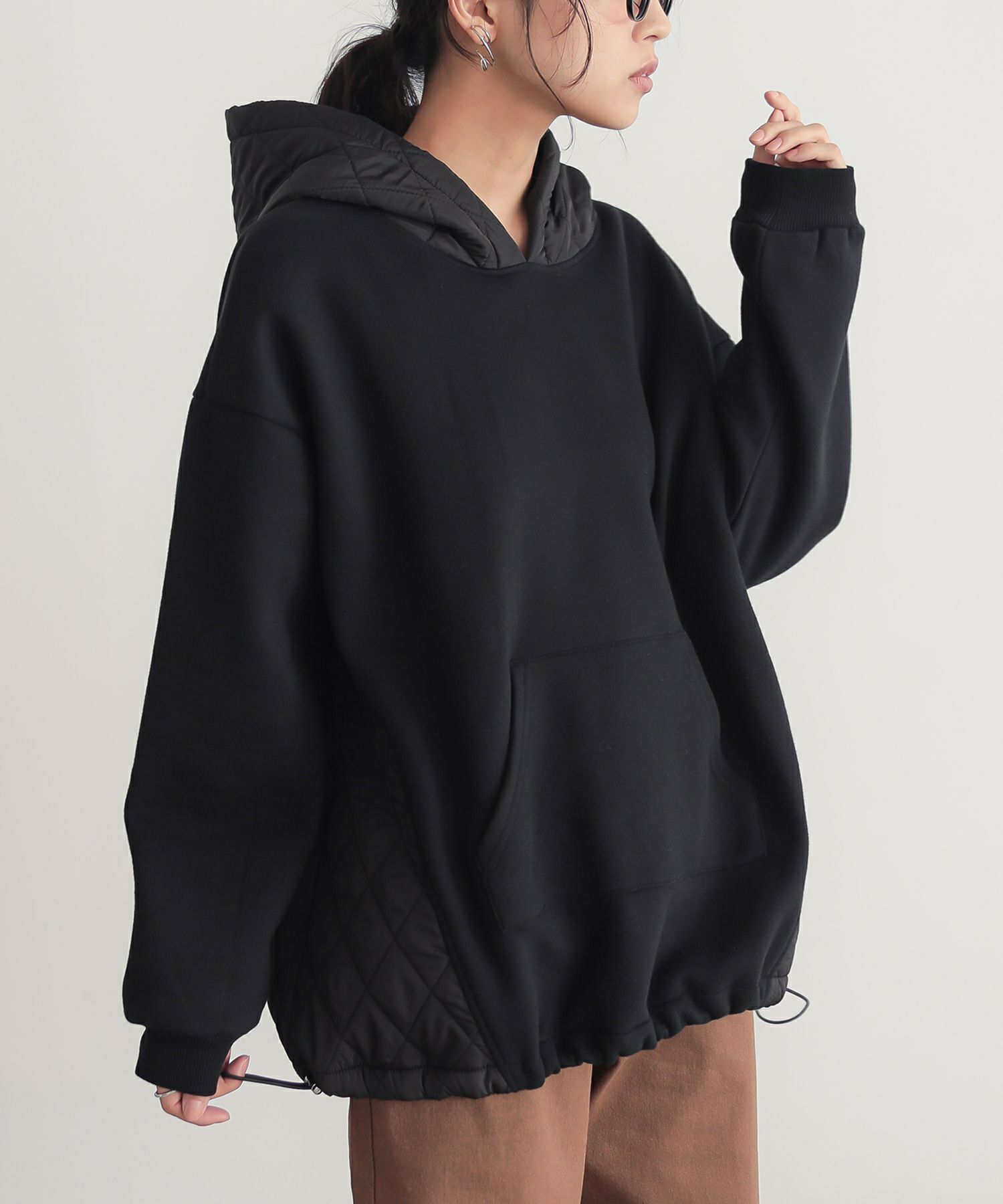ゆるっとシルエットのキルティング切替デザイン裏起毛パーカー。