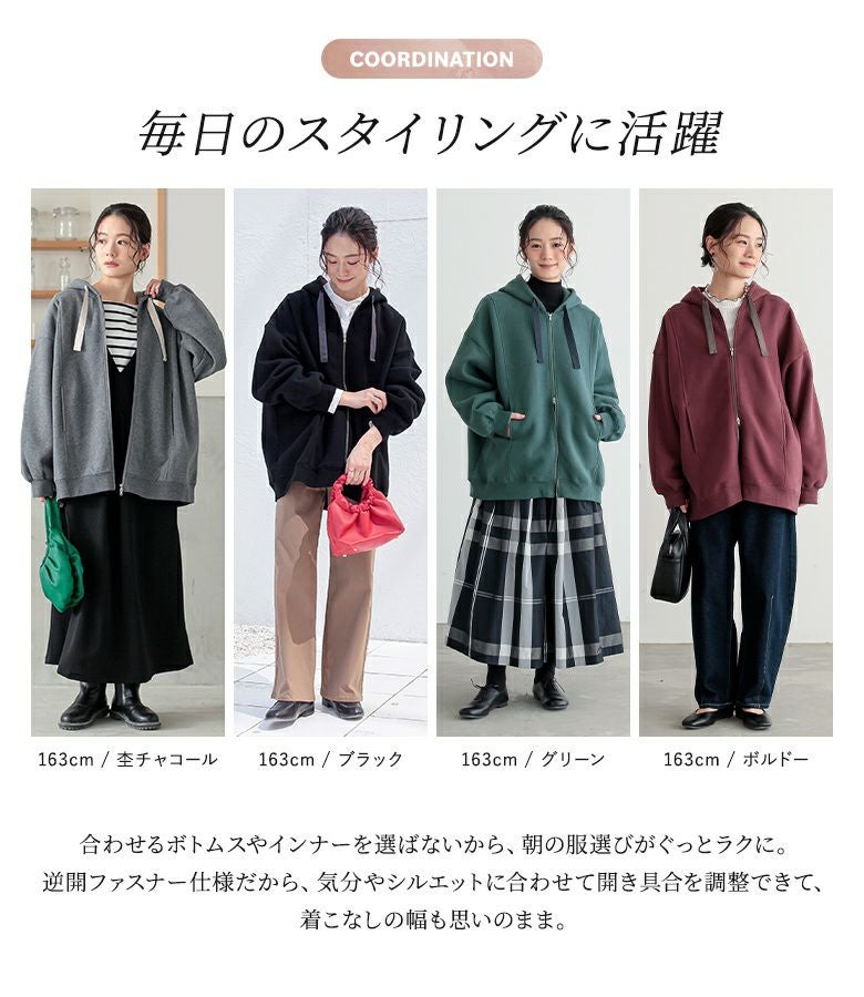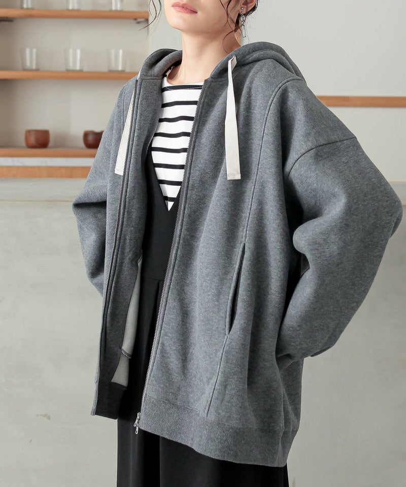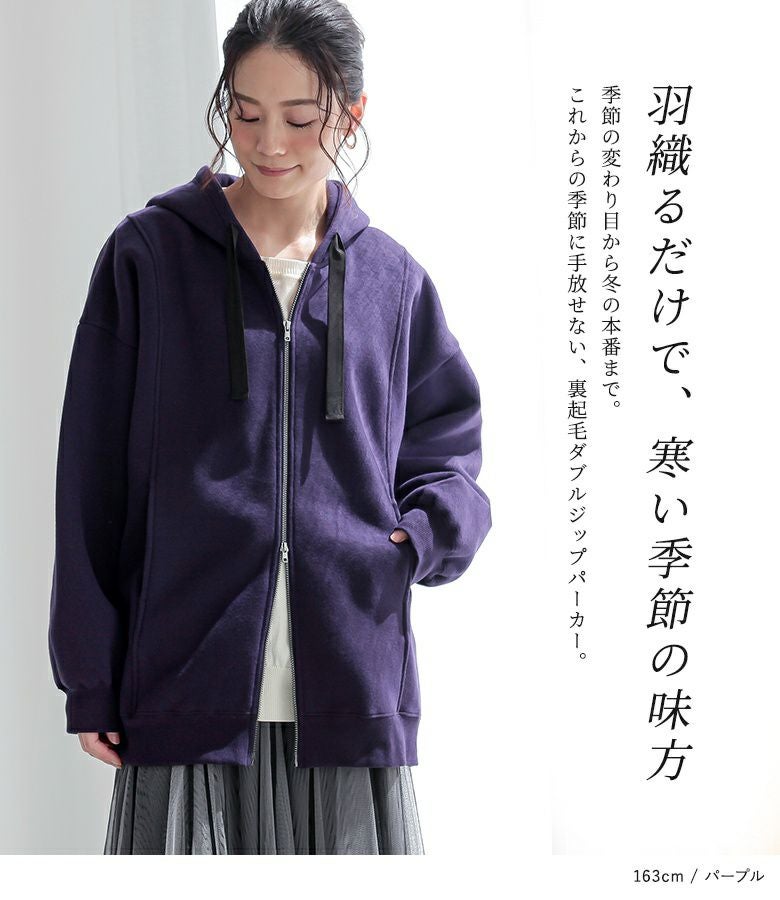 厚手の裏起毛がふんわりとしたあたたかさをプラスする、ダブルジップパーカー。