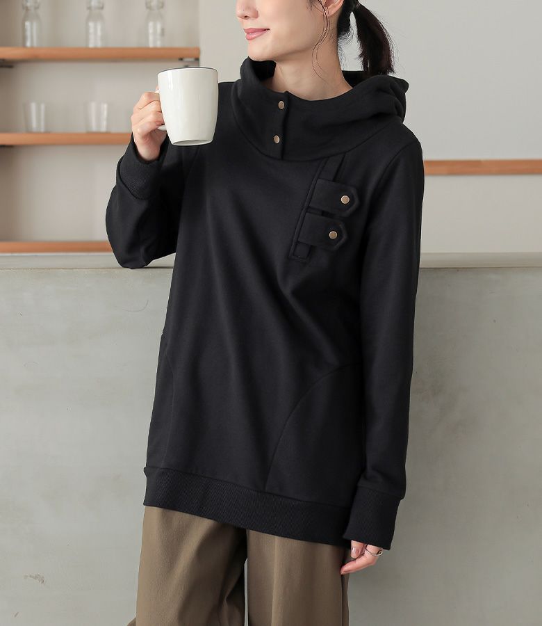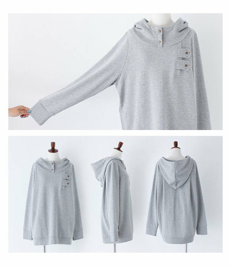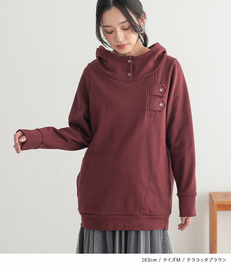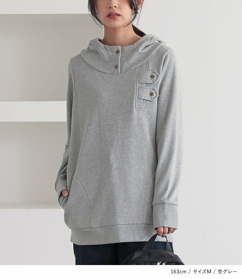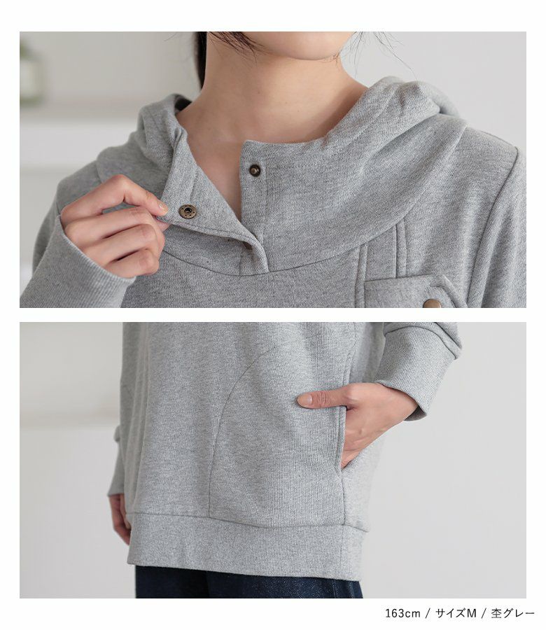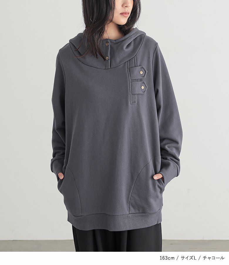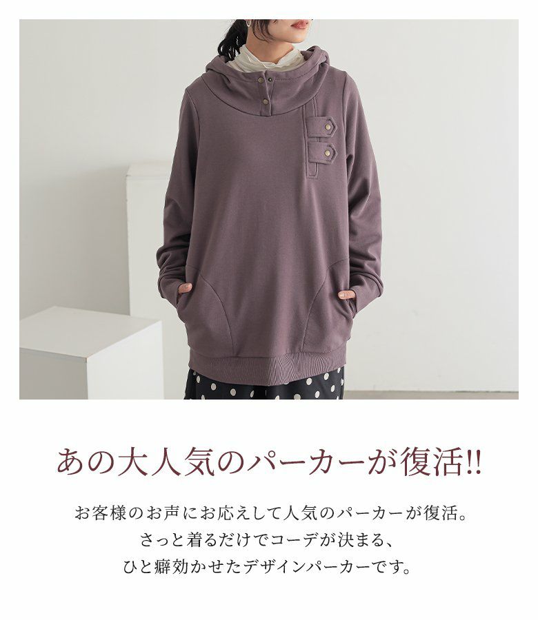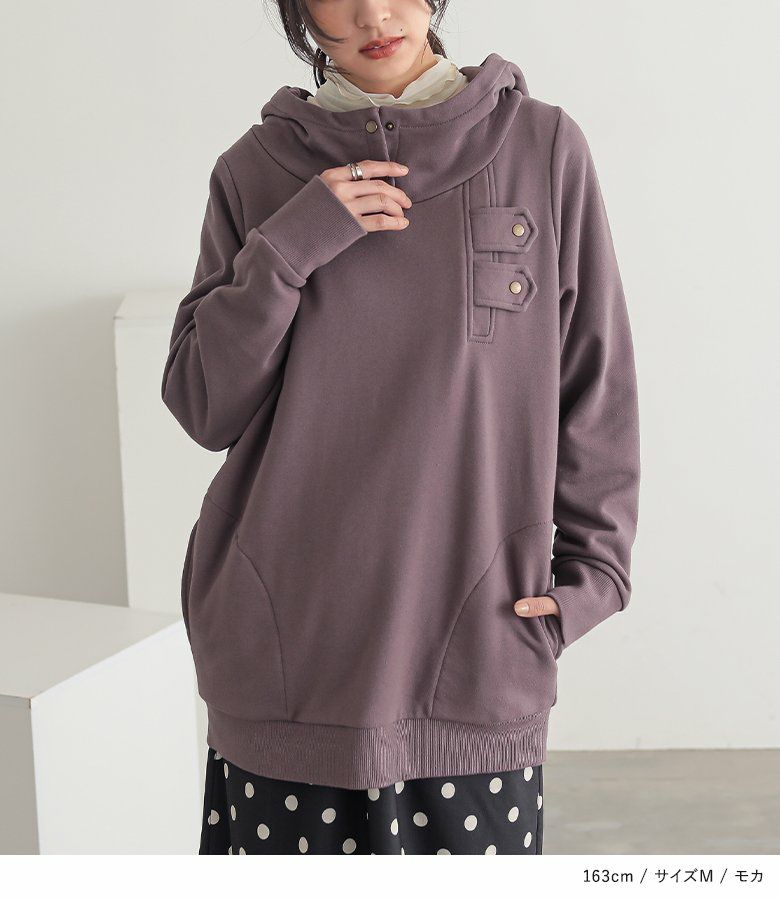 選べるM L LLサイズ展開!カッコ可愛いスタンドカラーデザインパーカー♪