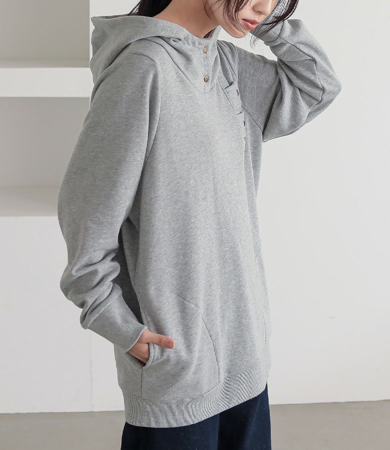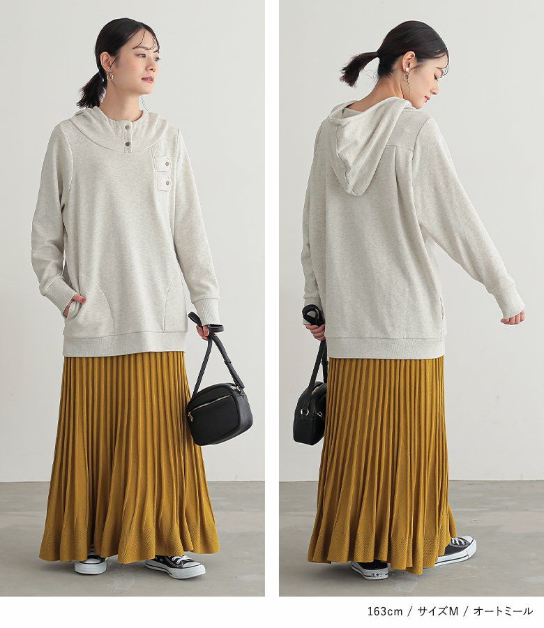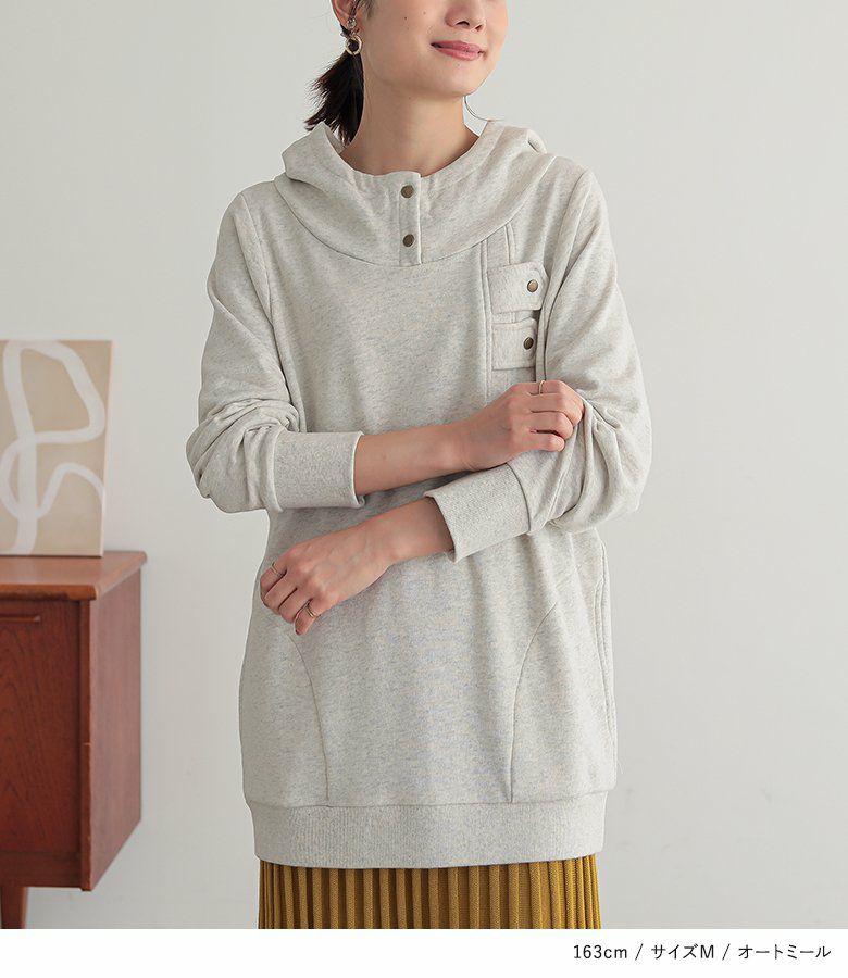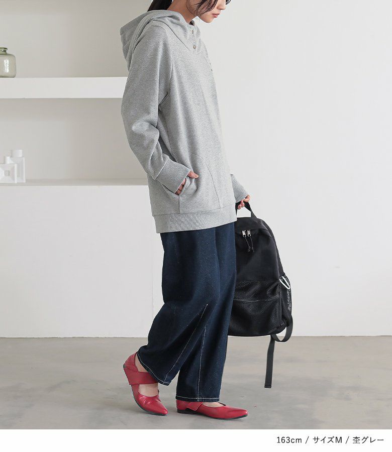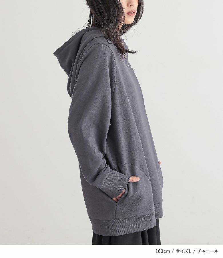 立体的な襟もとが表情までもお洒落に仕立ててくれて、ゆるっと着るだけでお洒落雰囲気漂う差のつくパーカーの到着です。