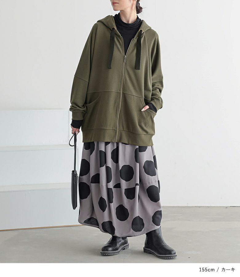 生地が分厚いのと見た目が可愛いということで防寒もお洒落もどちらも叶います。裾がゆったりしているのがさらに良いです。