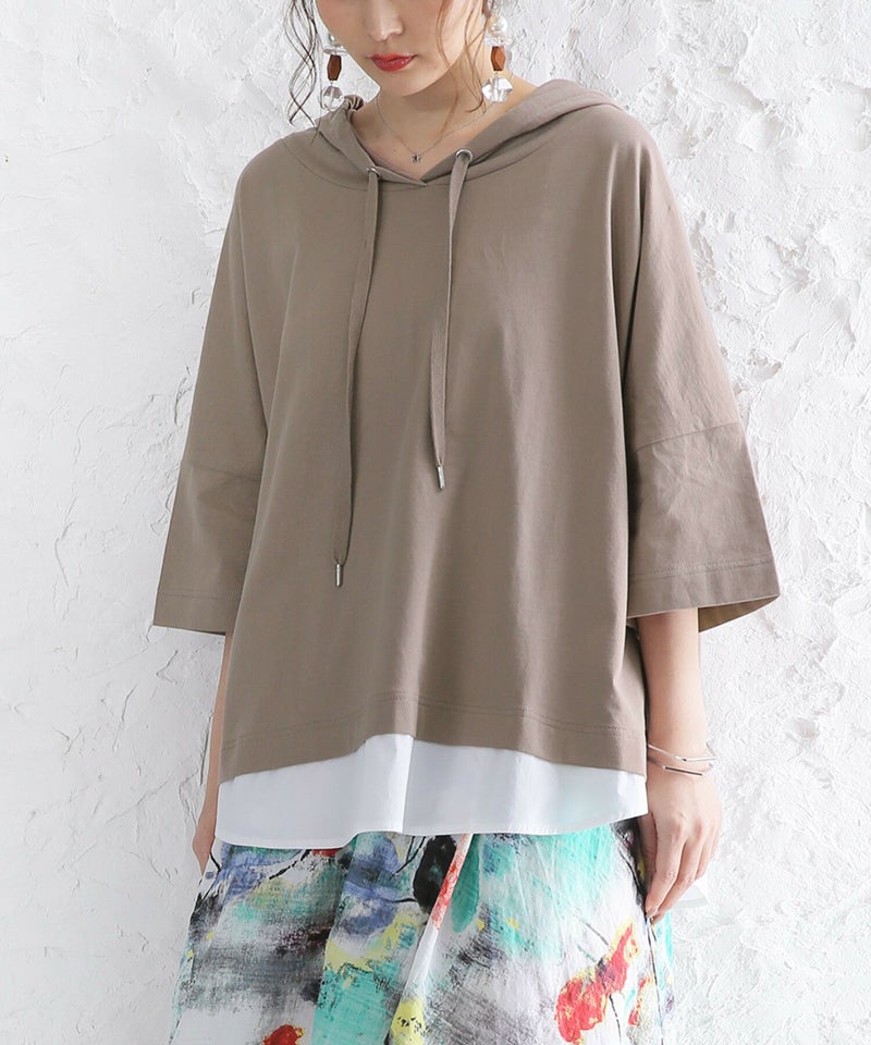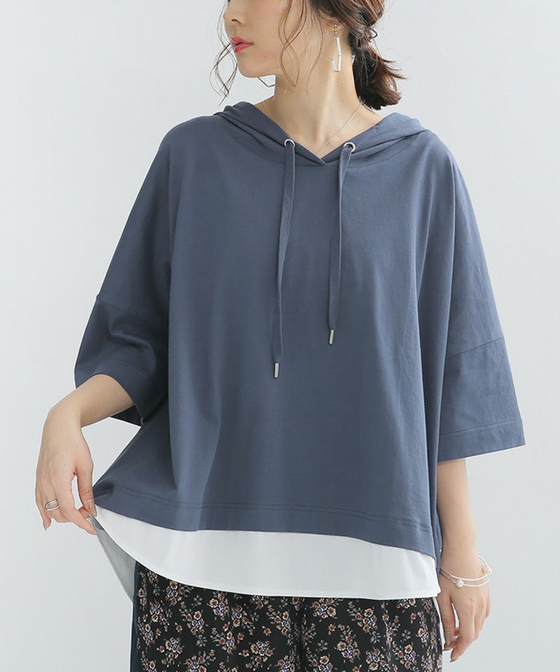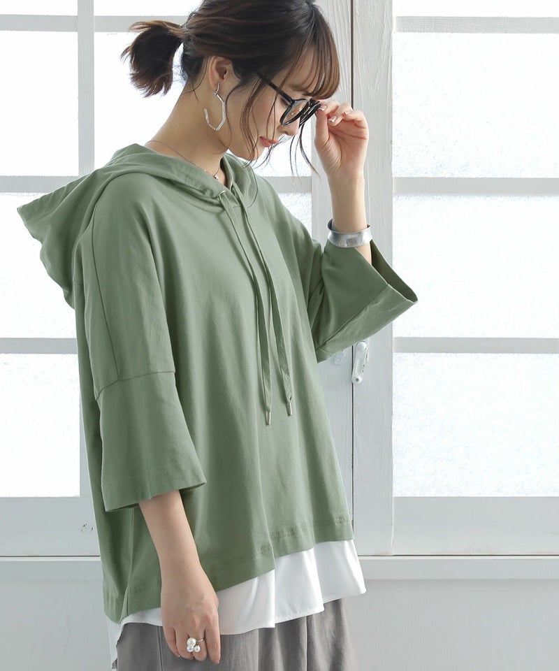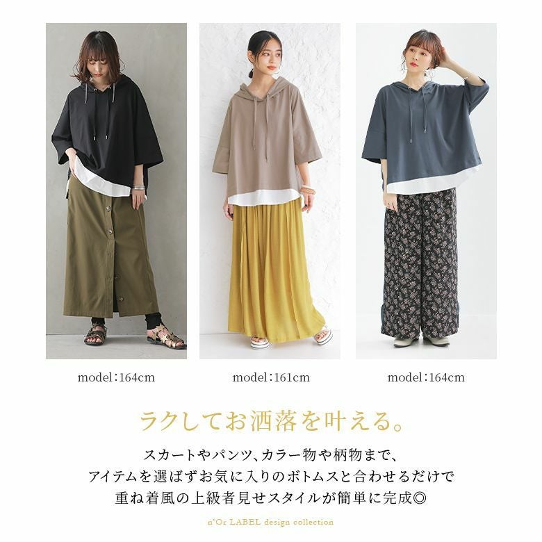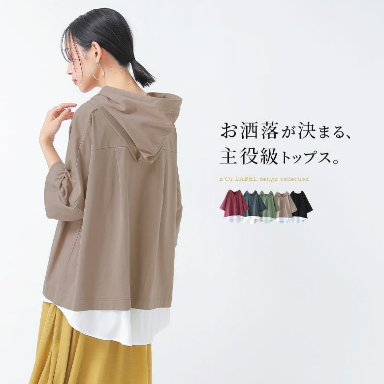 着るだけで上級者スタイルに仕上がる≪n'OrLABEL≫レイヤード風フードパーカーです。
