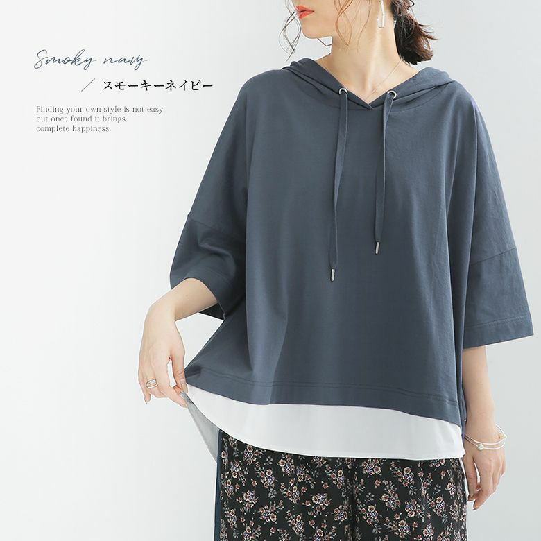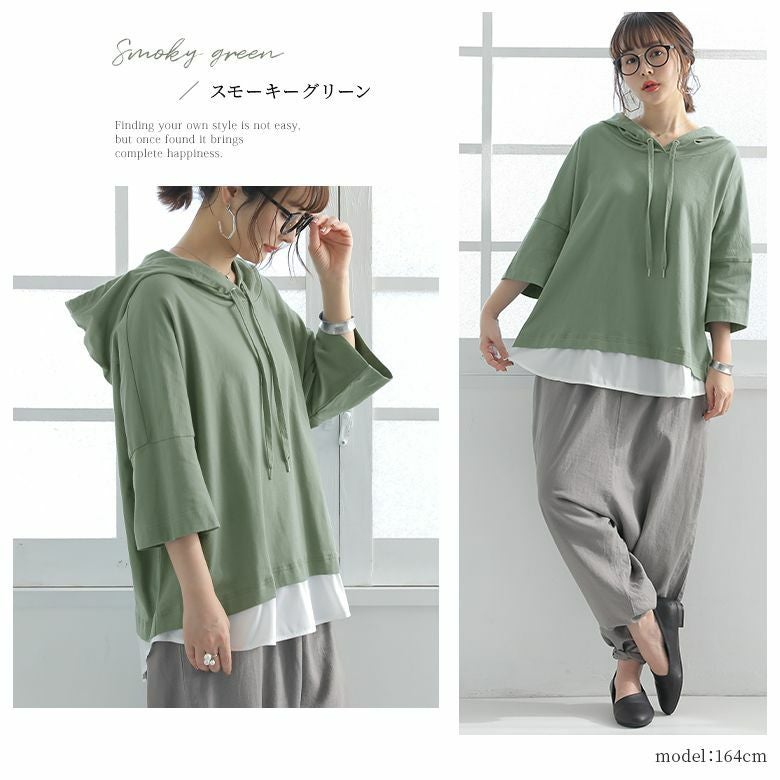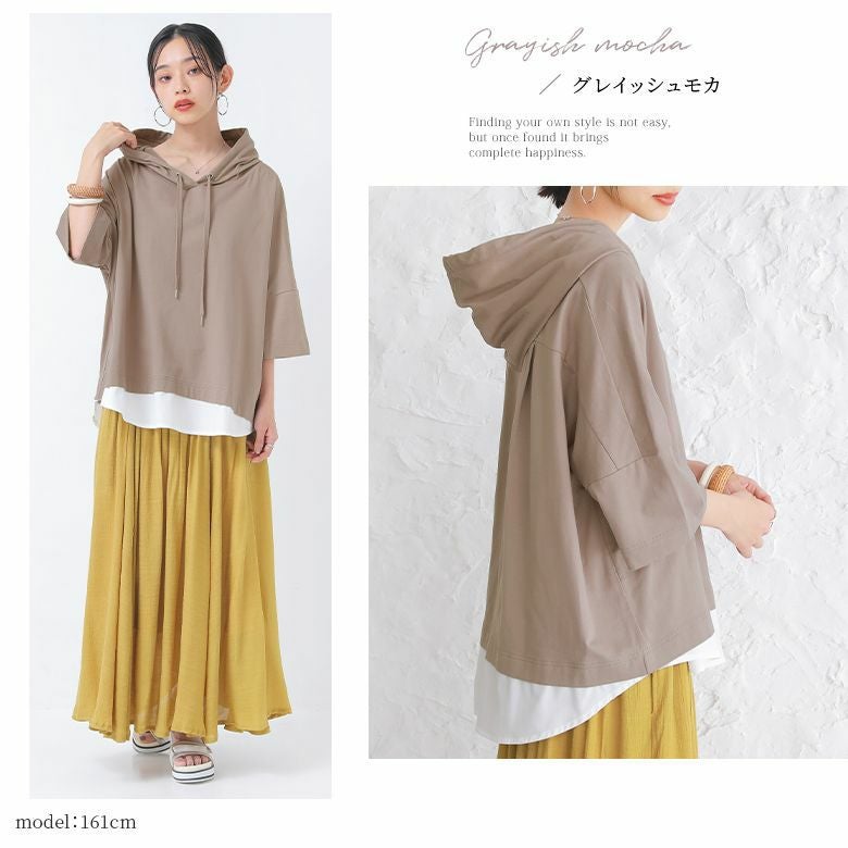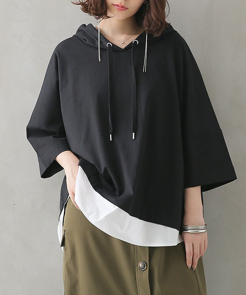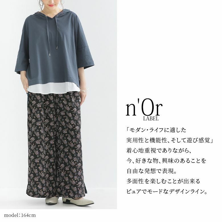 着るだけで上級者スタイルに仕上がる≪n'OrLABEL≫レイヤード風フードパーカーです。