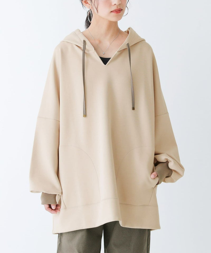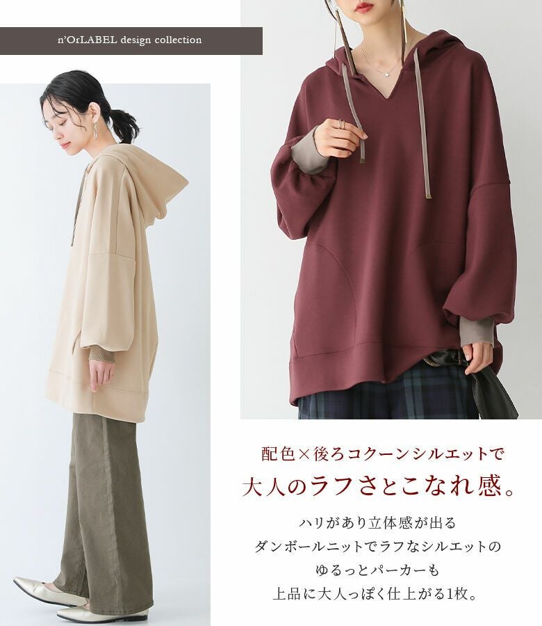 ラフだけど上品に大人っぽく着られる≪n'OrLABEL≫ダンボールニットキーネックパーカーです。